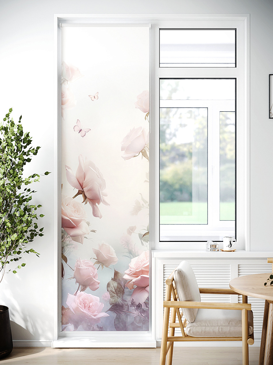 ВыбратьРулонная штора на балконную дверь оформлена стильным дизайном, смягчает грани пространства, обеспечивает фильтрацию света для максимального комфорта.