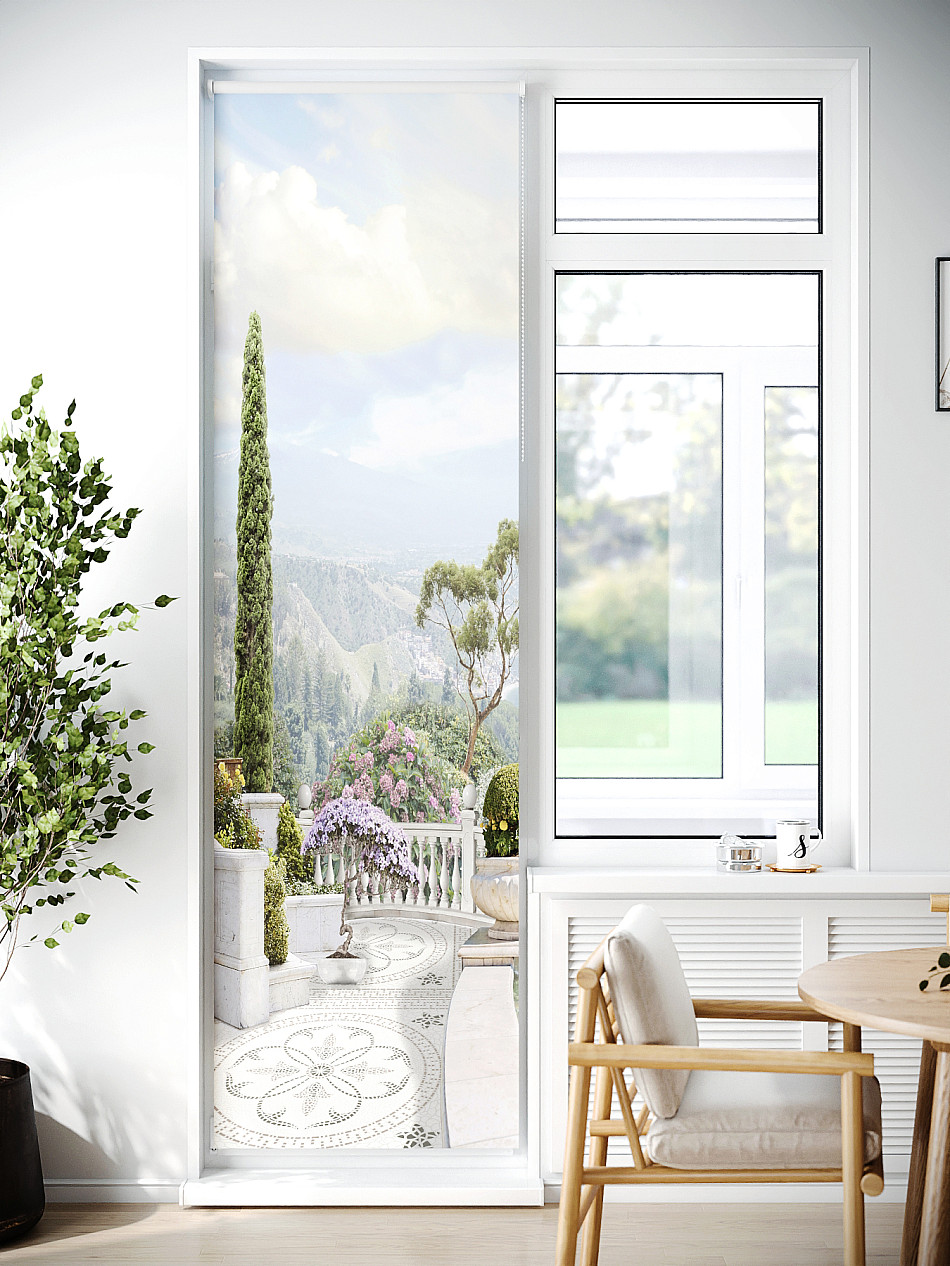 ВыбратьРулонная штора на балконную дверь оформлена стильным дизайном, смягчает грани пространства, обеспечивает фильтрацию света для максимального комфорта.