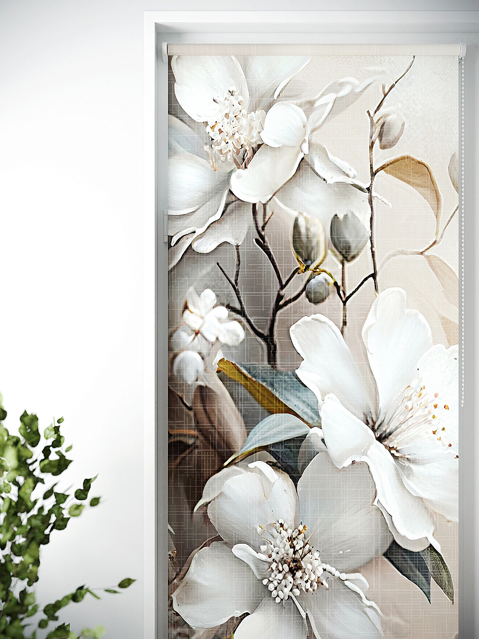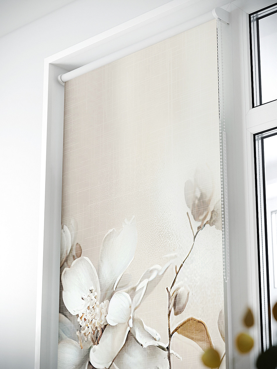 - Бежевые рулонные шторы