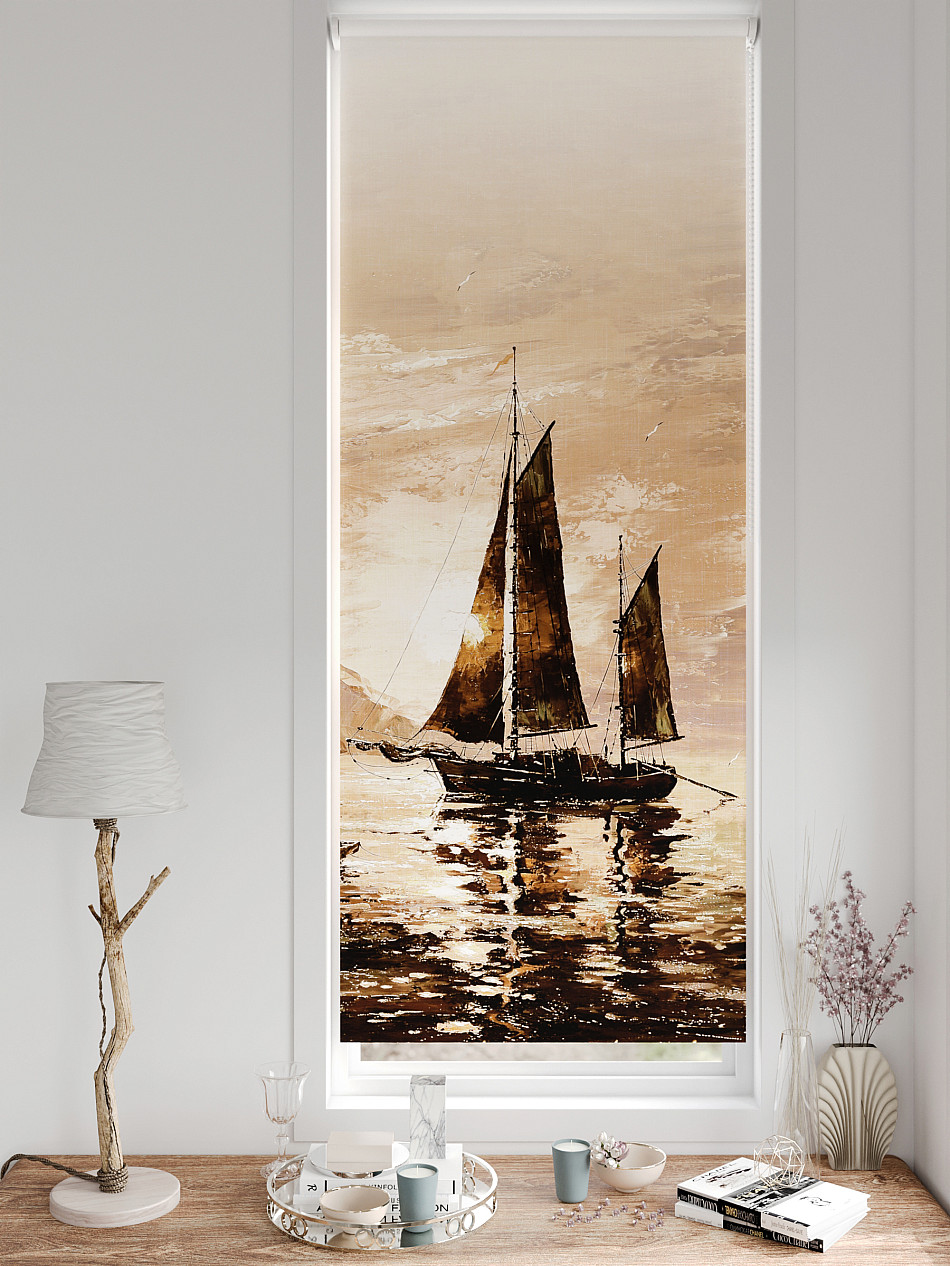 - Бежевые рулонные шторы