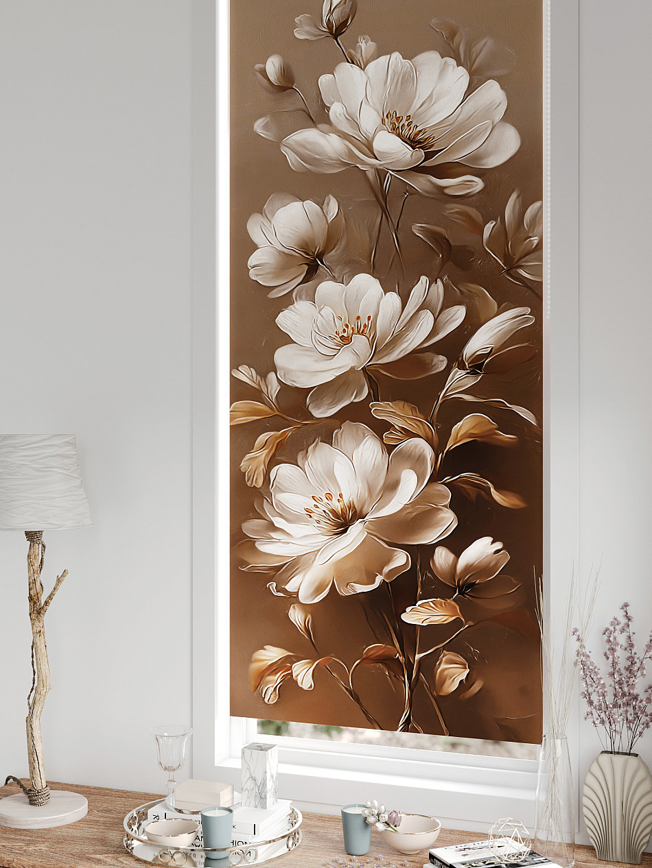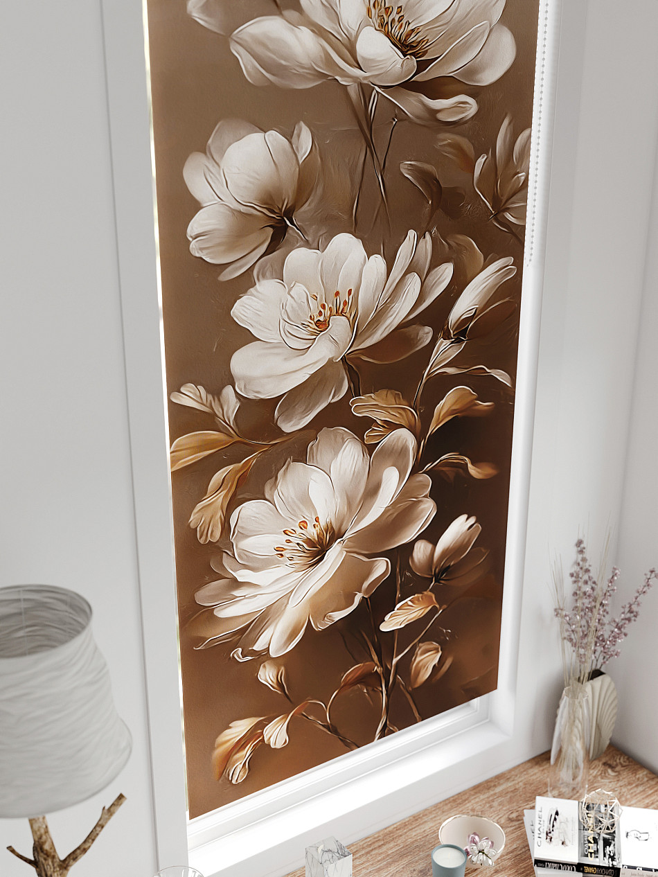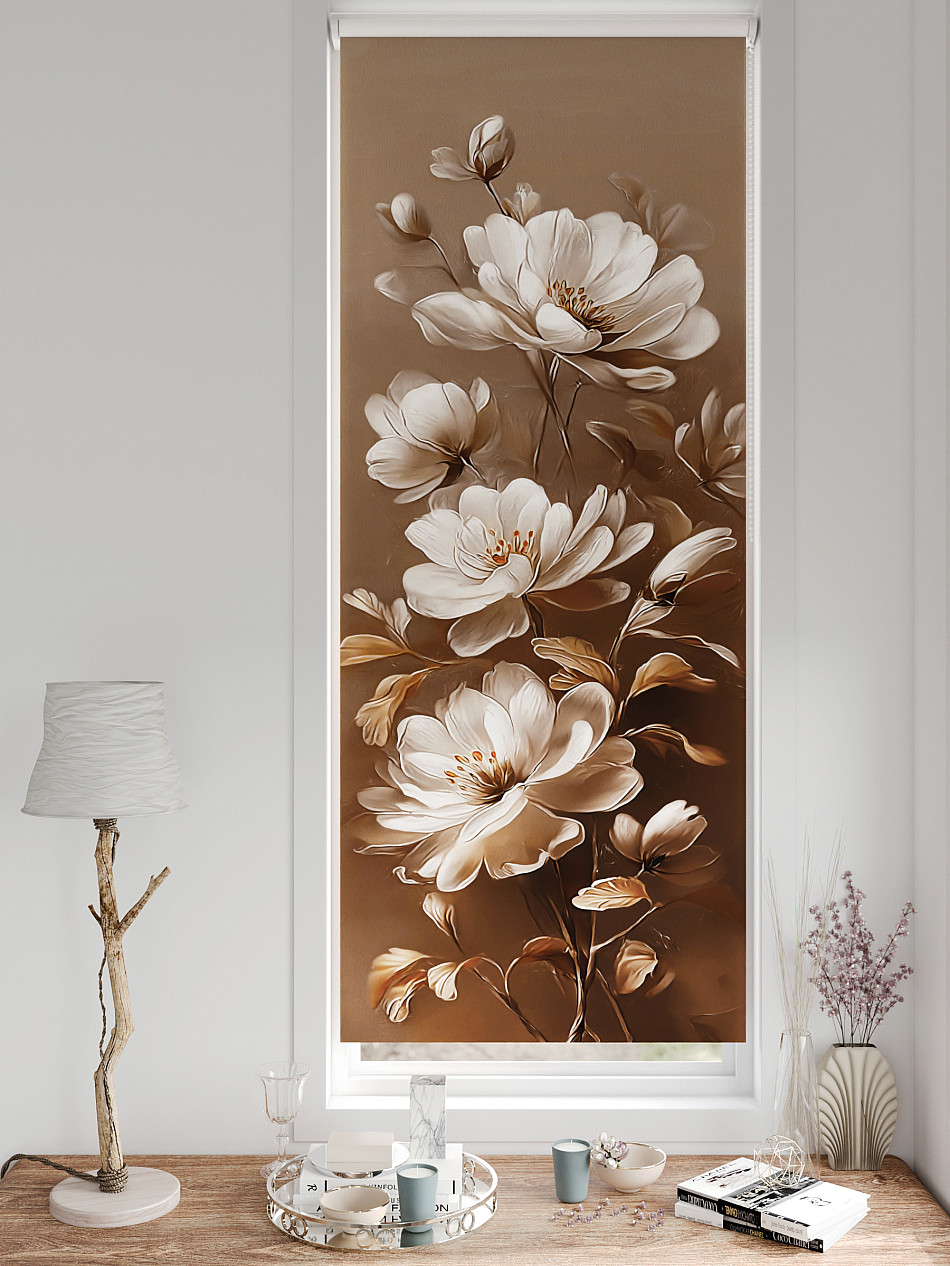 - Бежевые рулонные шторы