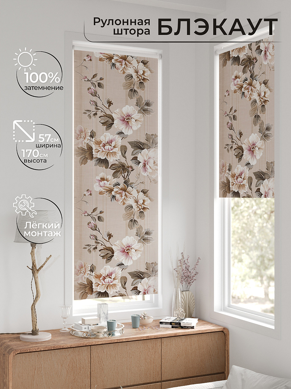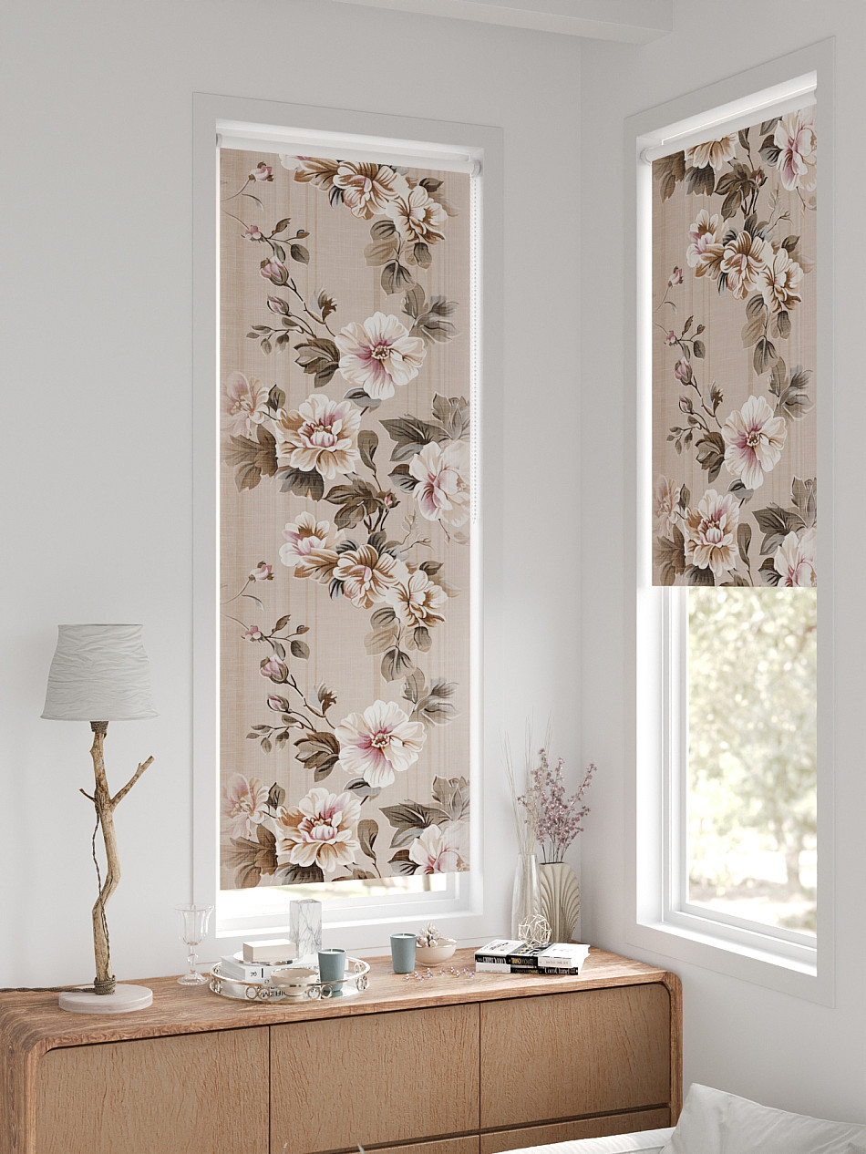 - Бежевые рулонные шторы
