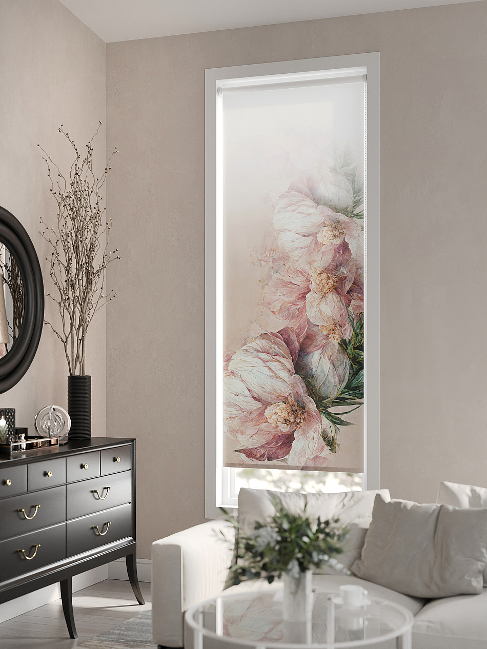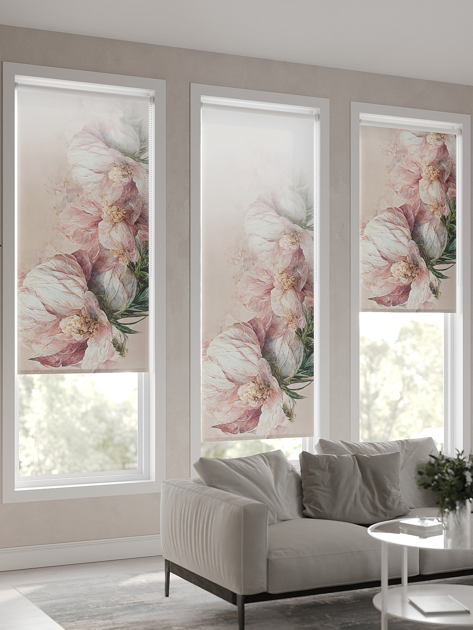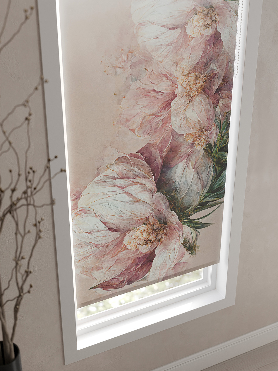 - Бежевые рулонные шторы