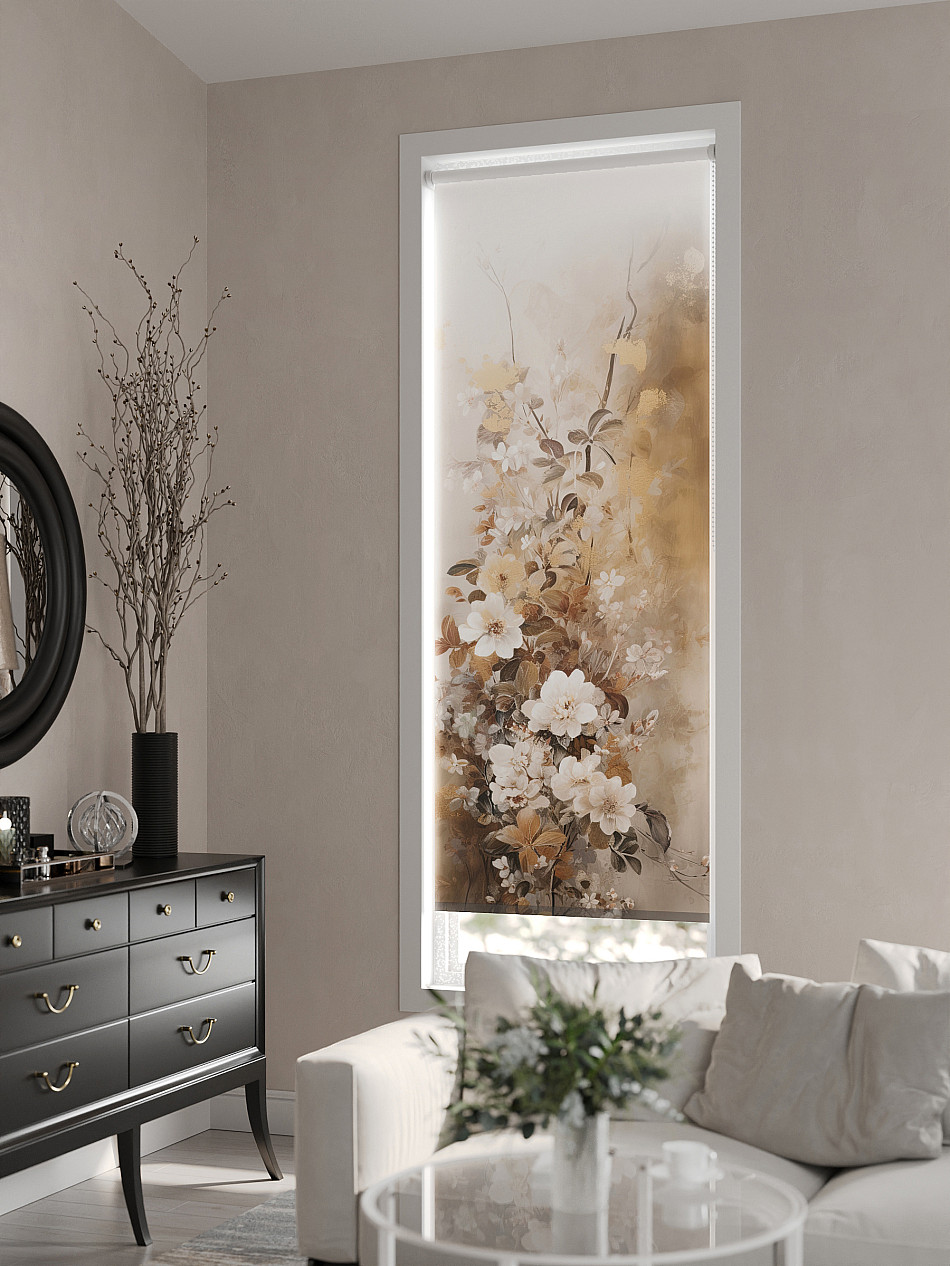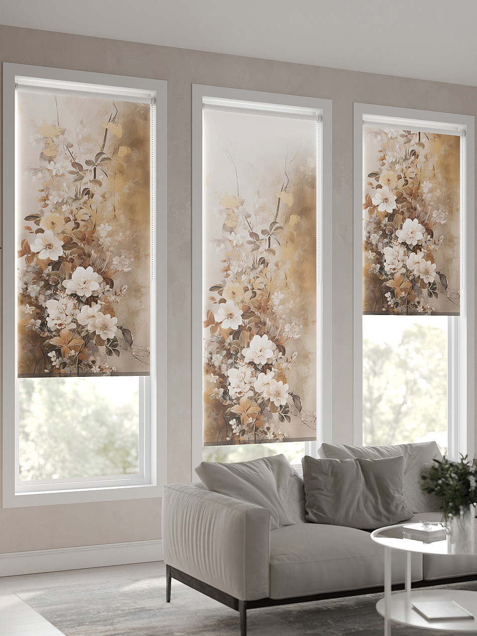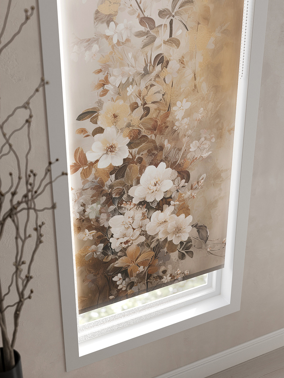 - Бежевые рулонные шторы
