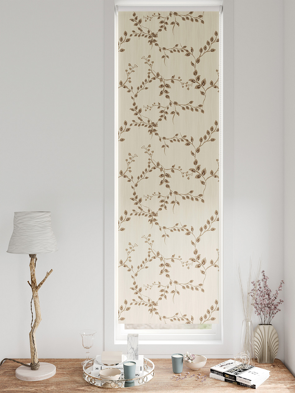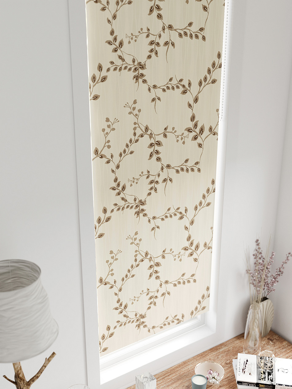 Рулонная штора – это ровное полотно материи, которое сворачивается в небольшой валик с помощью специального механизма. Внизу полотна расположена планка-утяжелитель, благодаря чему штора легко опускается вниз и всегда остается в натянутом положении. Цепочный механизм, поднимающий ткань, располагается сбоку шторы и может быть размещен с любой стороны для удобства пользования.