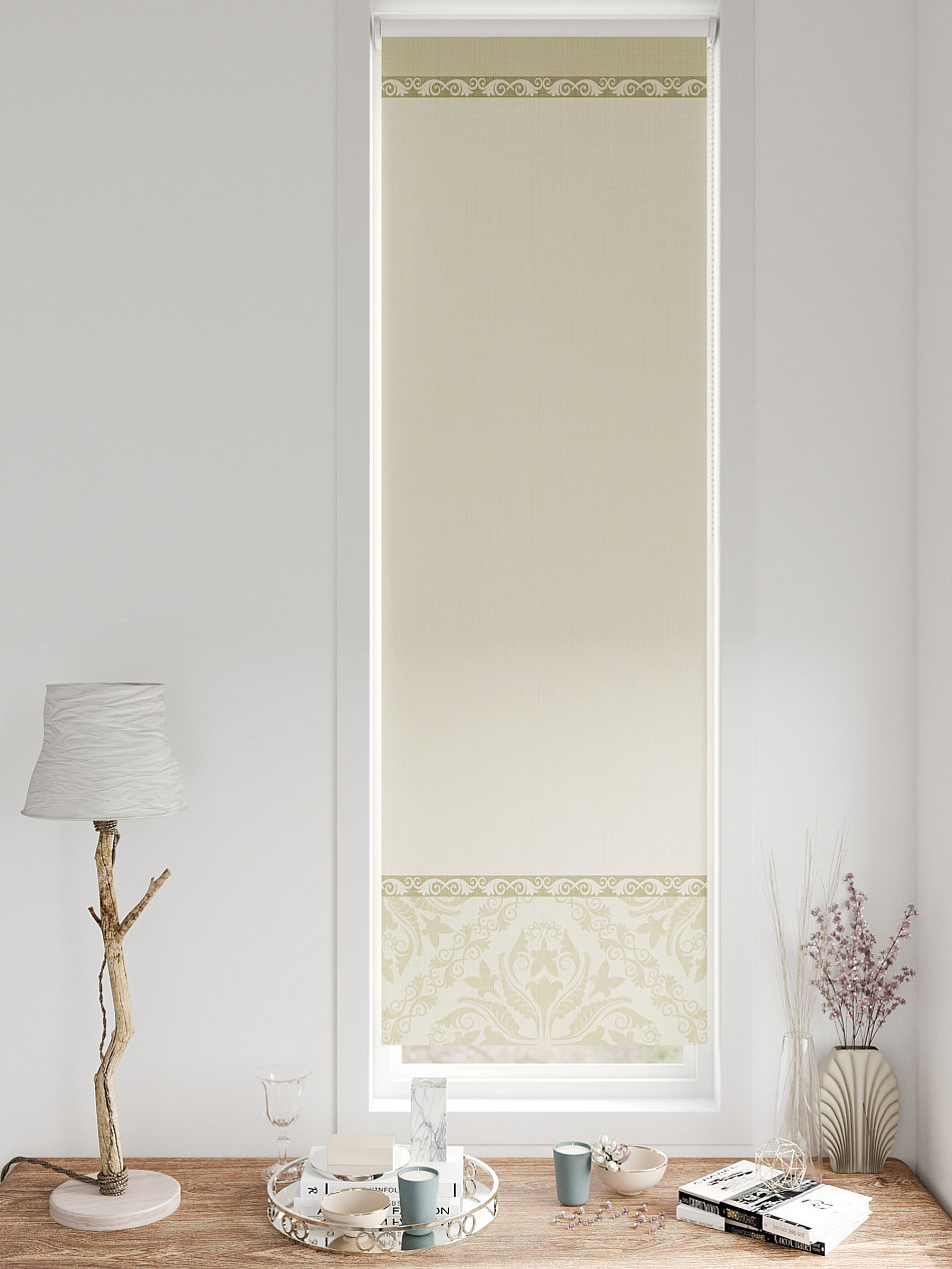 - Бежевые рулонные шторы