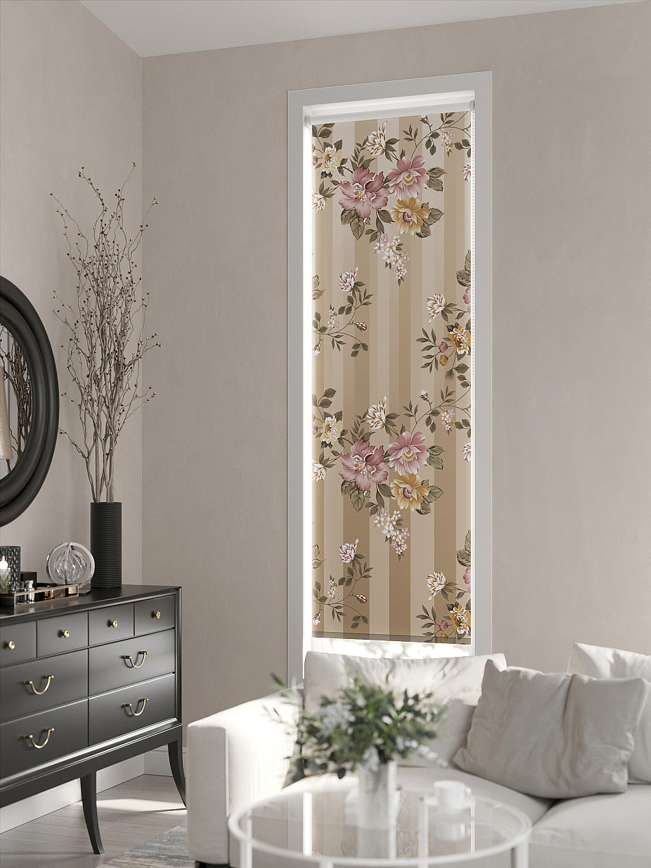 Нет необходимости делать штору заведомо короткой, т.к. в рулонной шторе вы просто тканевый валик не разматываете до конца, а в римской-складки.