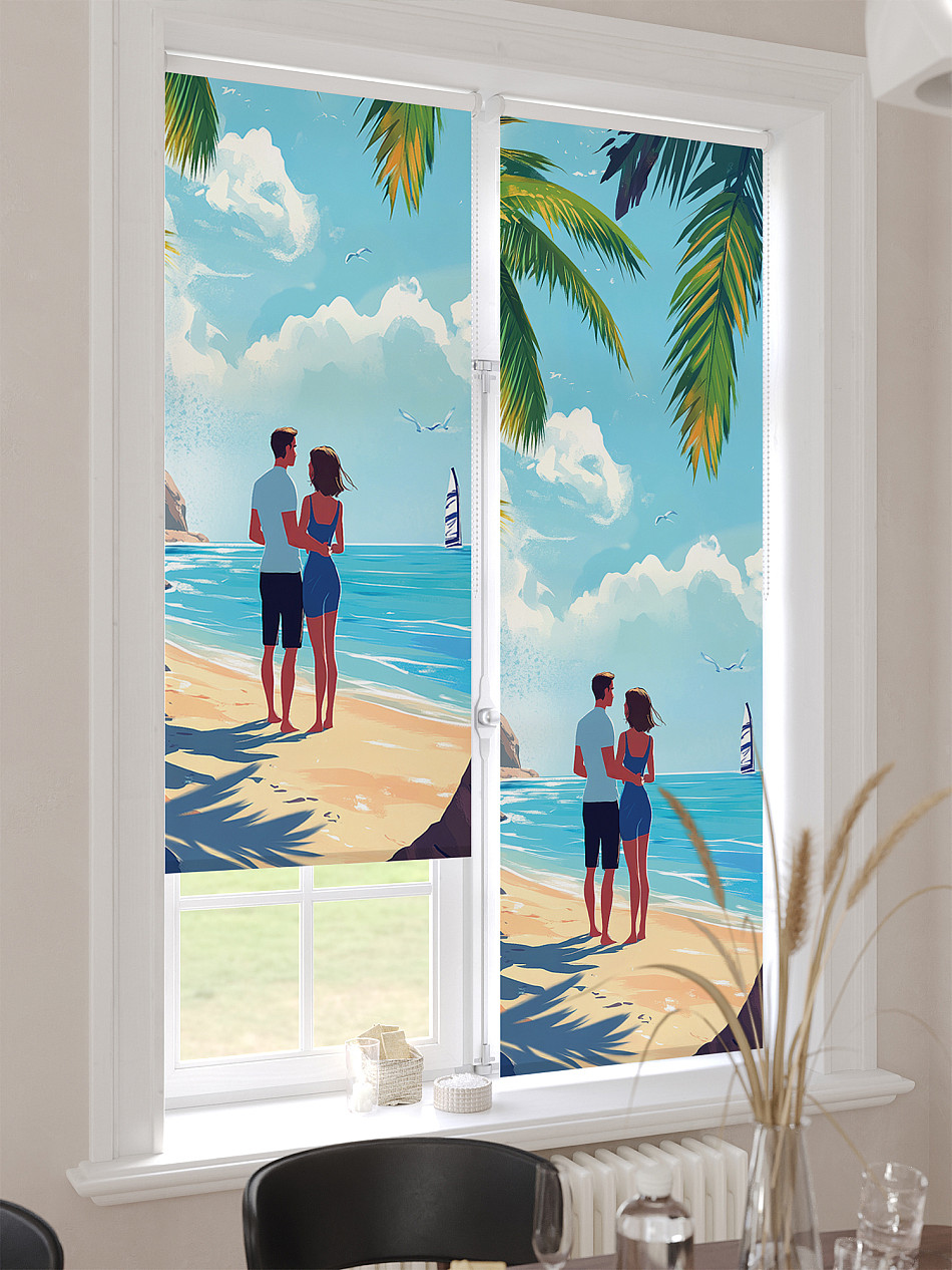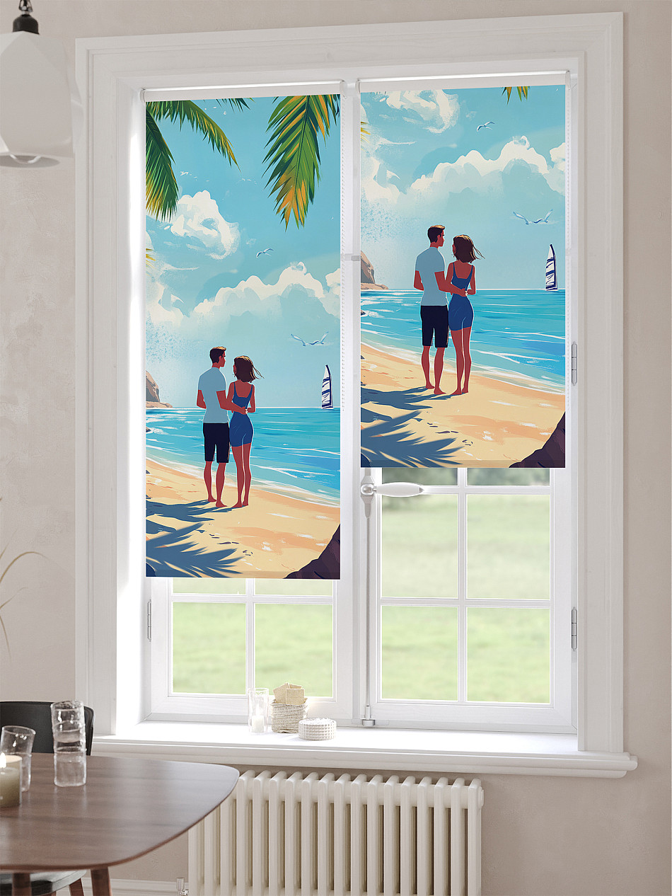 - Бежевые рулонные шторы