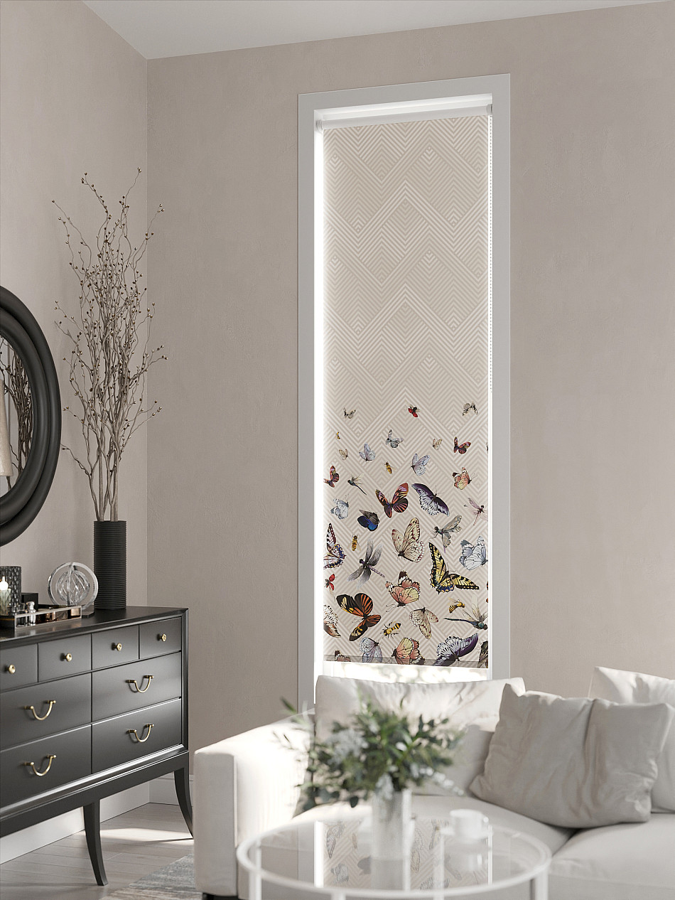 Нет необходимости делать штору заведомо короткой, т.к. в рулонной шторе вы просто тканевый валик не разматываете до конца, а в римской-складки.