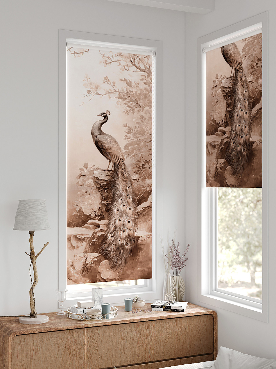 - Бежевые рулонные шторы