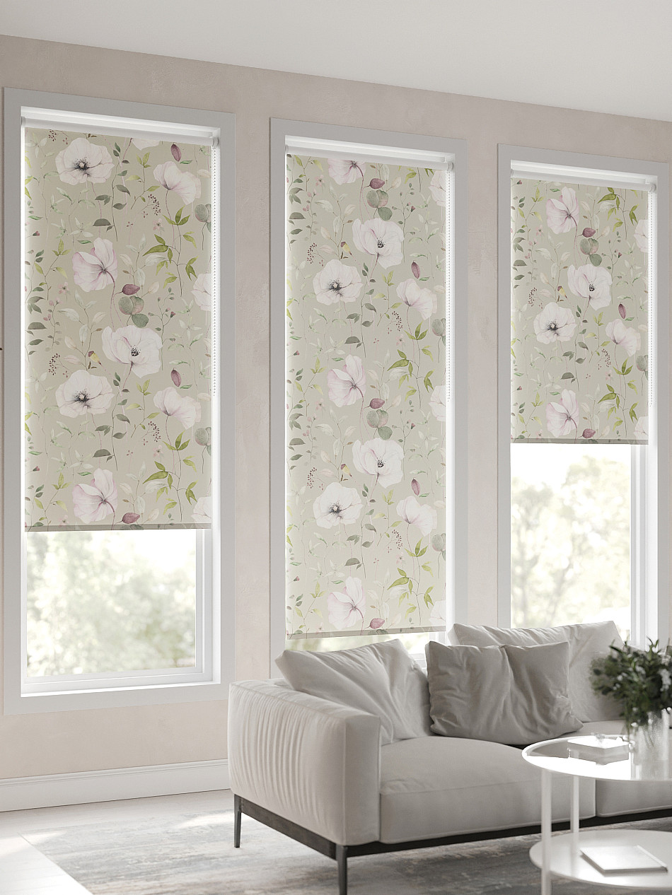 - Бежевые рулонные шторы