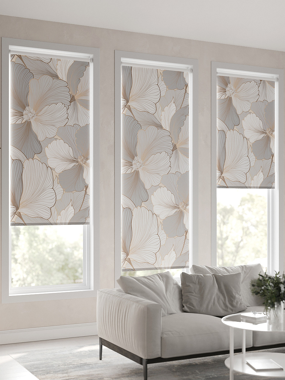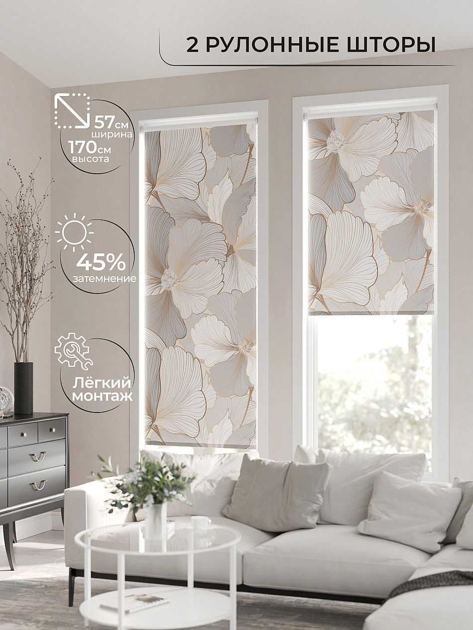 - Бежевые рулонные шторы