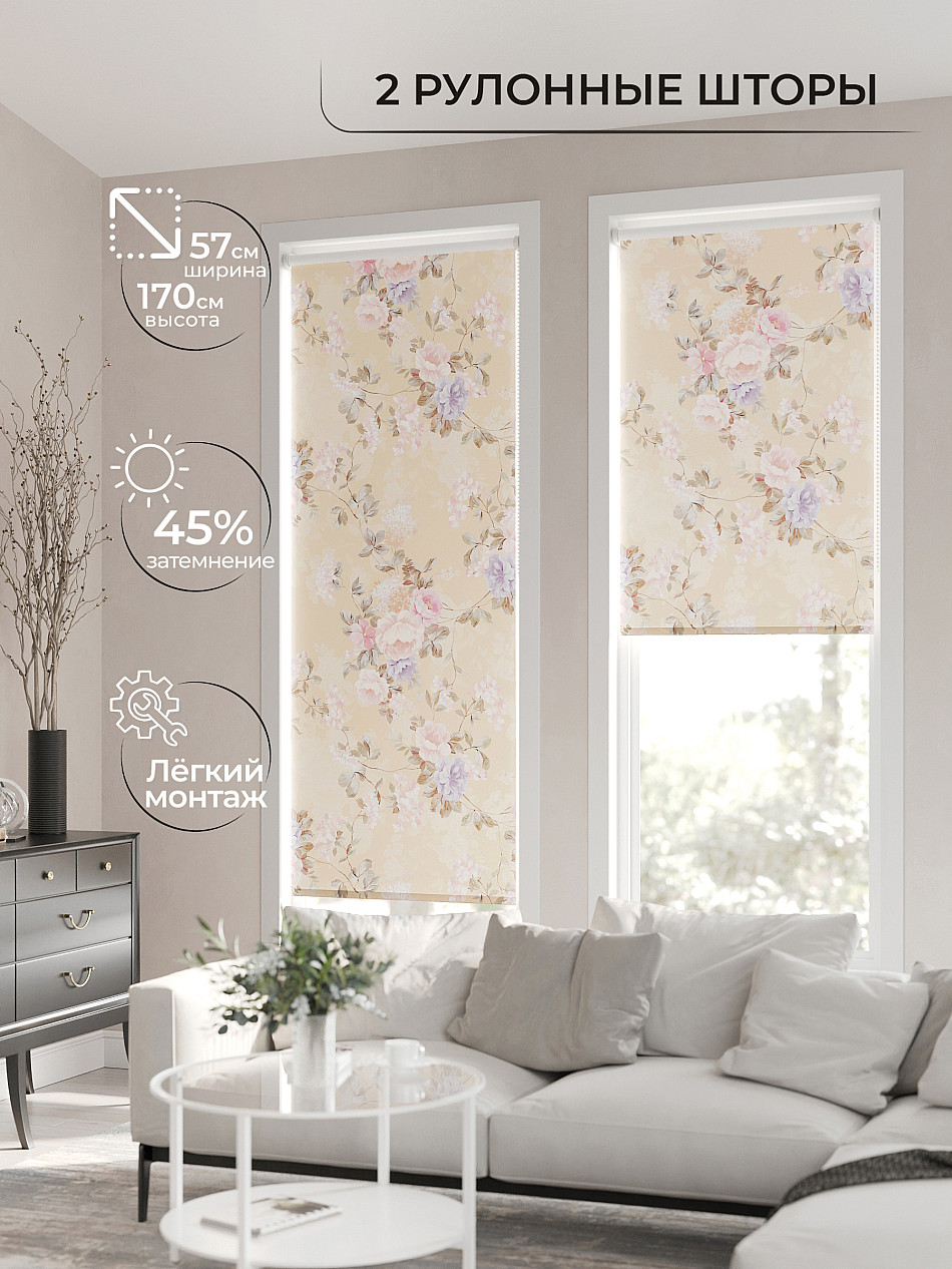 - Бежевые рулонные шторы