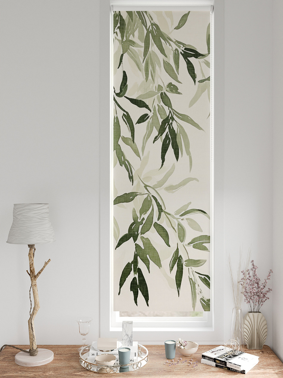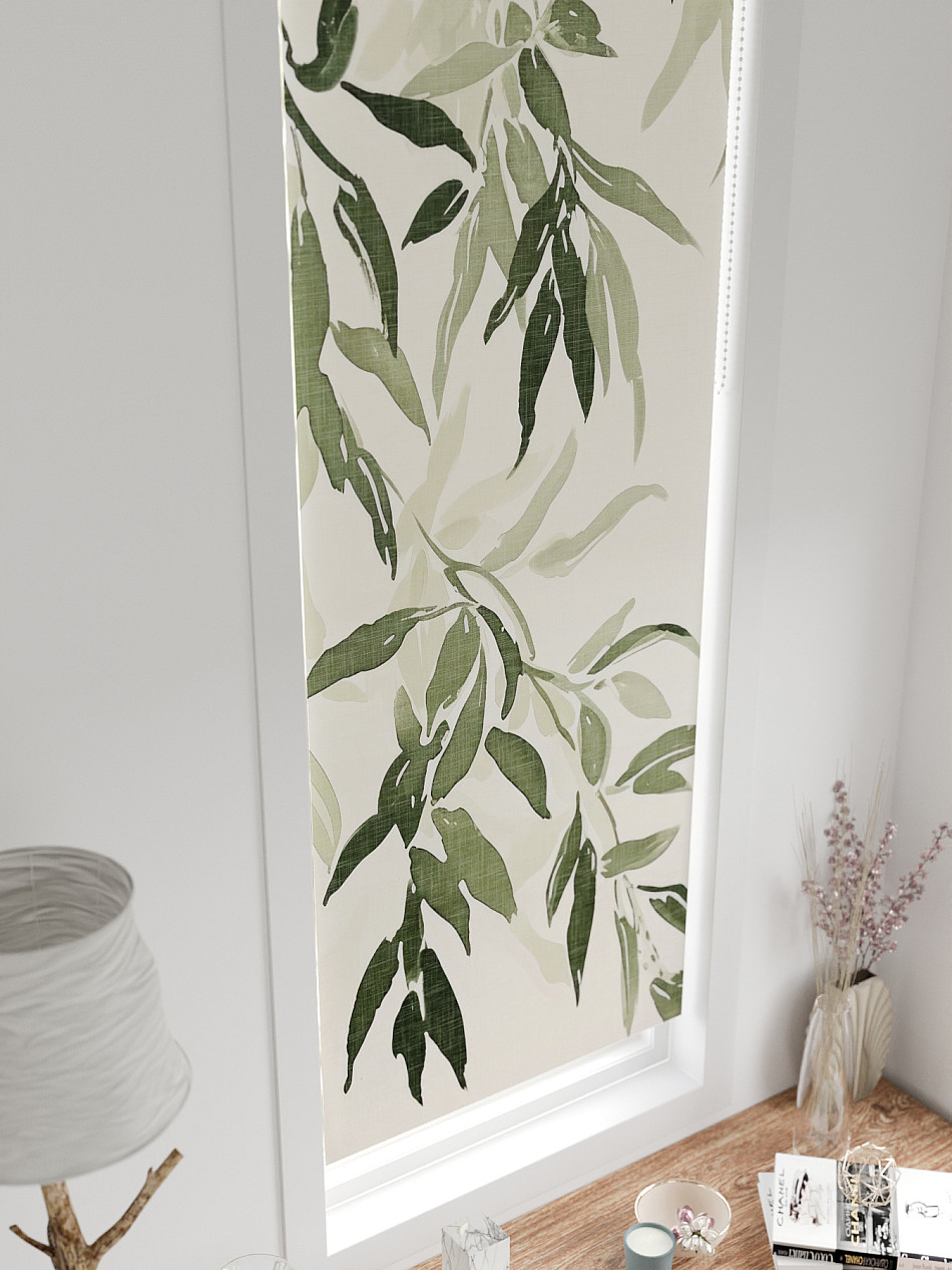 Рулонная штора – это ровное полотно материи, которое сворачивается в небольшой валик с помощью специального механизма. Внизу полотна расположена планка-утяжелитель, благодаря чему штора легко опускается вниз и всегда остается в натянутом положении. Цепочный механизм, поднимающий ткань, располагается сбоку шторы и может быть размещен с любой стороны для удобства пользования.