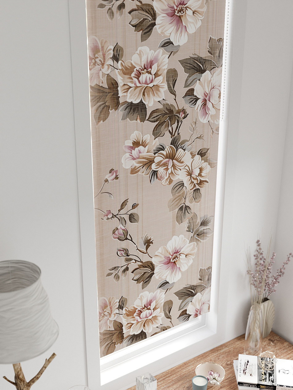 - Бежевые рулонные шторы
