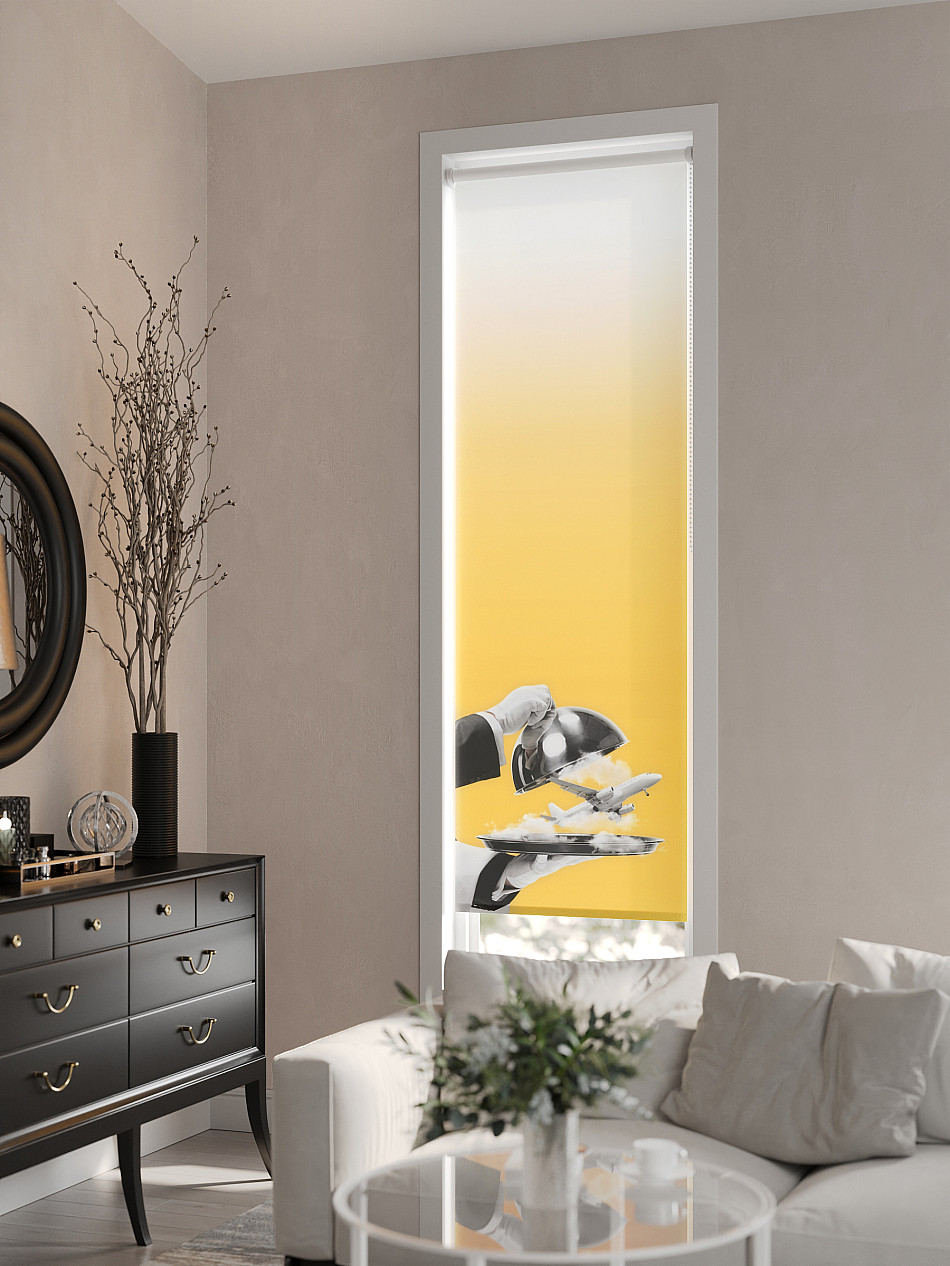 Нет необходимости делать штору заведомо короткой, т.к. в рулонной шторе вы просто тканевый валик не разматываете до конца, а в римской-складки.