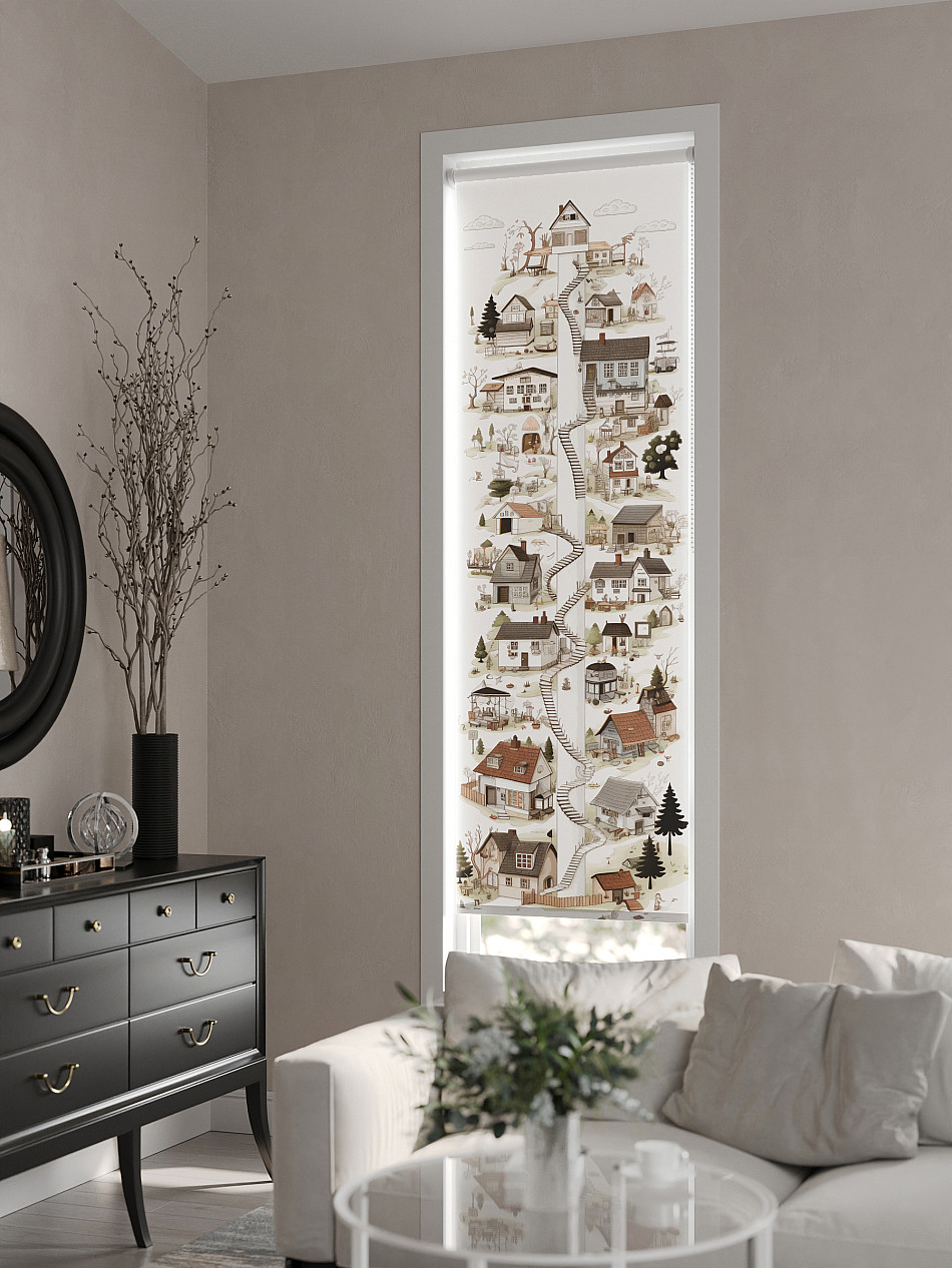 Нет необходимости делать штору заведомо короткой, т.к. в рулонной шторе вы просто тканевый валик не разматываете до конца, а в римской-складки.