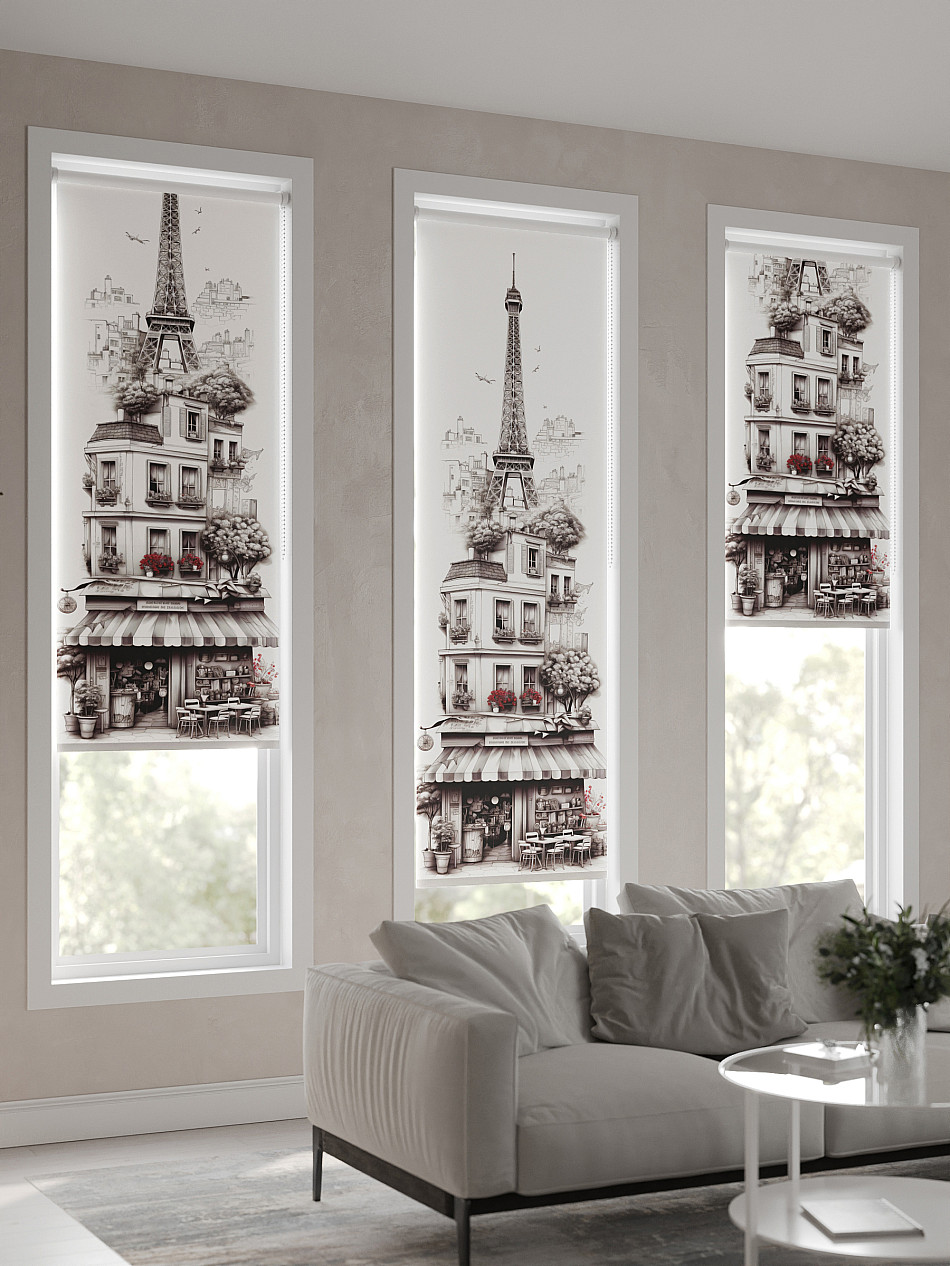 Нет необходимости делать штору заведомо короткой, т.к. в рулонной шторе вы просто тканевый валик не разматываете до конца, а в римской-складки.