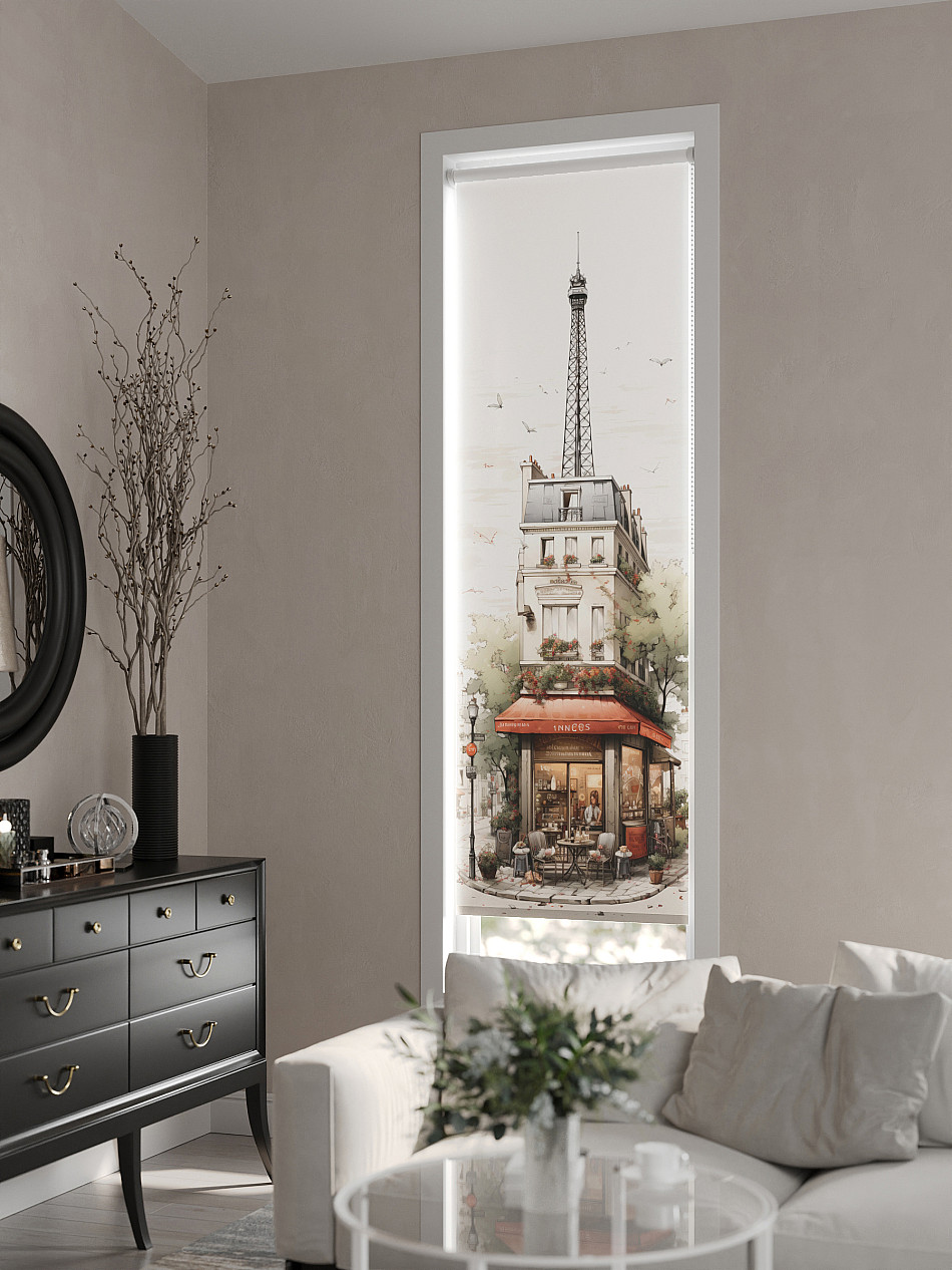 Нет необходимости делать штору заведомо короткой, т.к. в рулонной шторе вы просто тканевый валик не разматываете до конца, а в римской-складки.