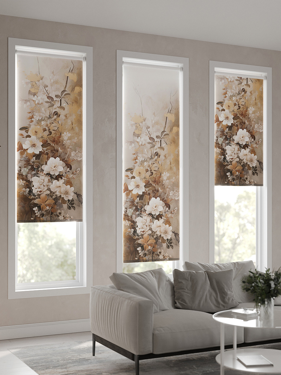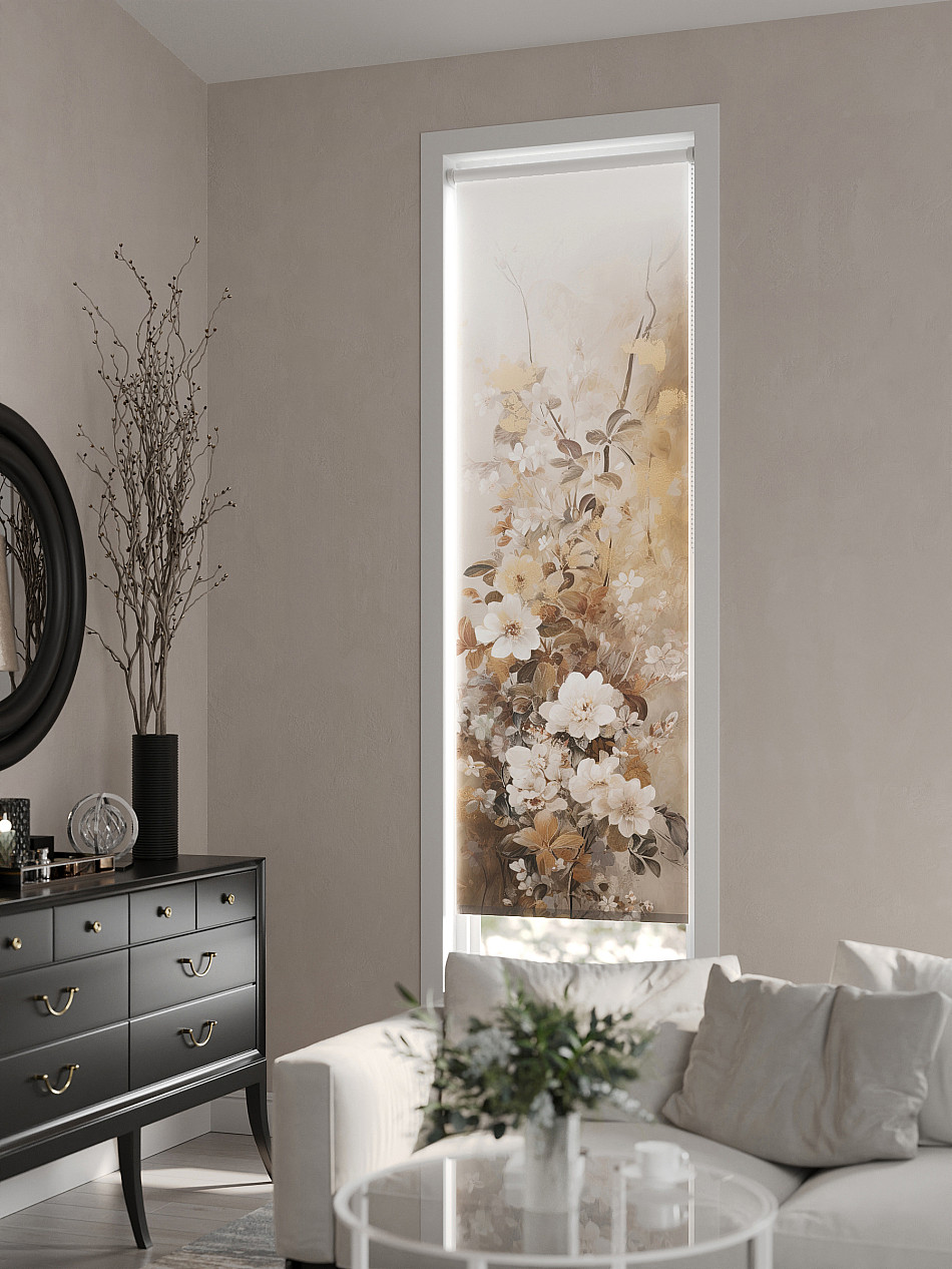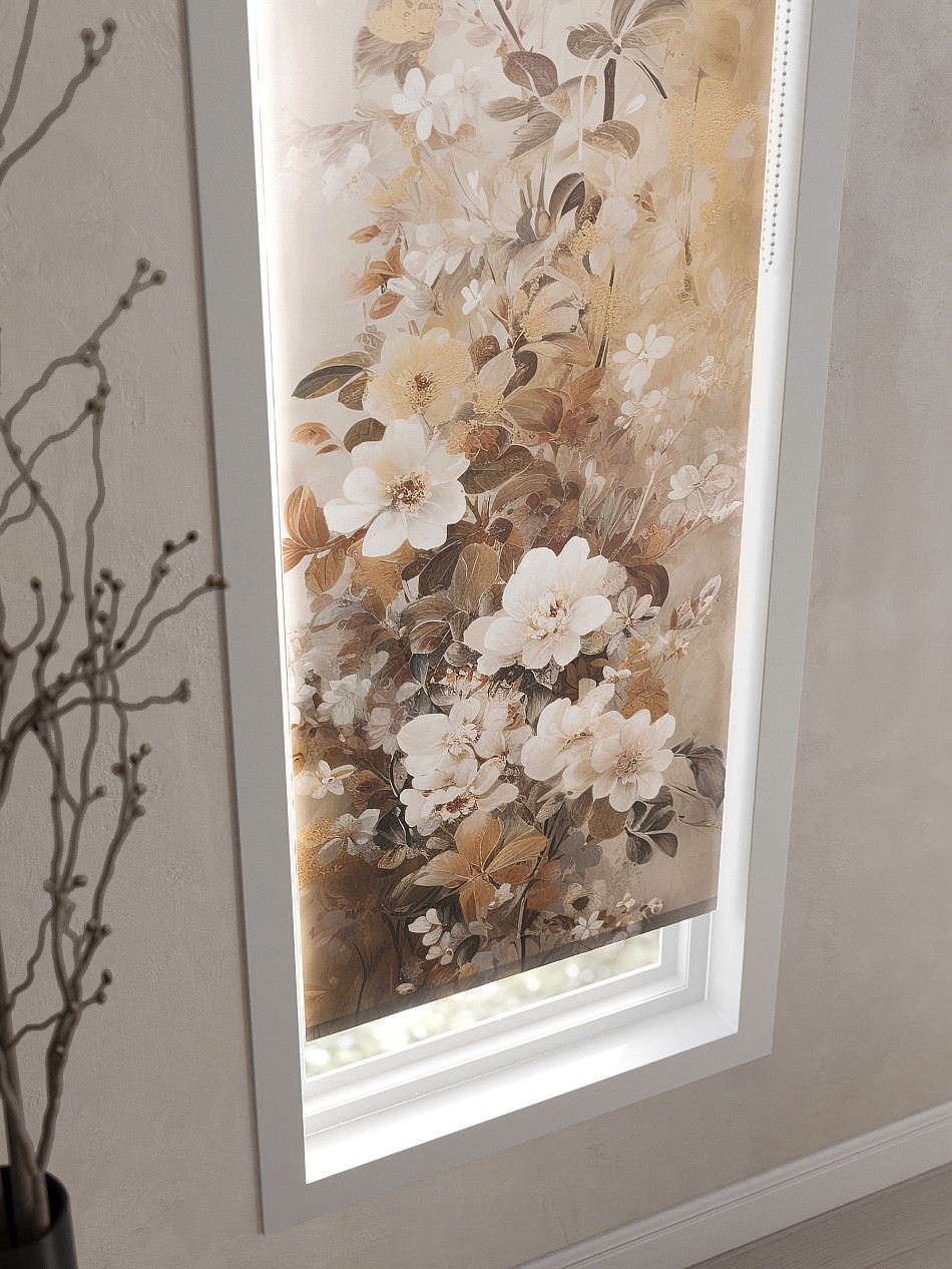 - Бежевые рулонные шторы