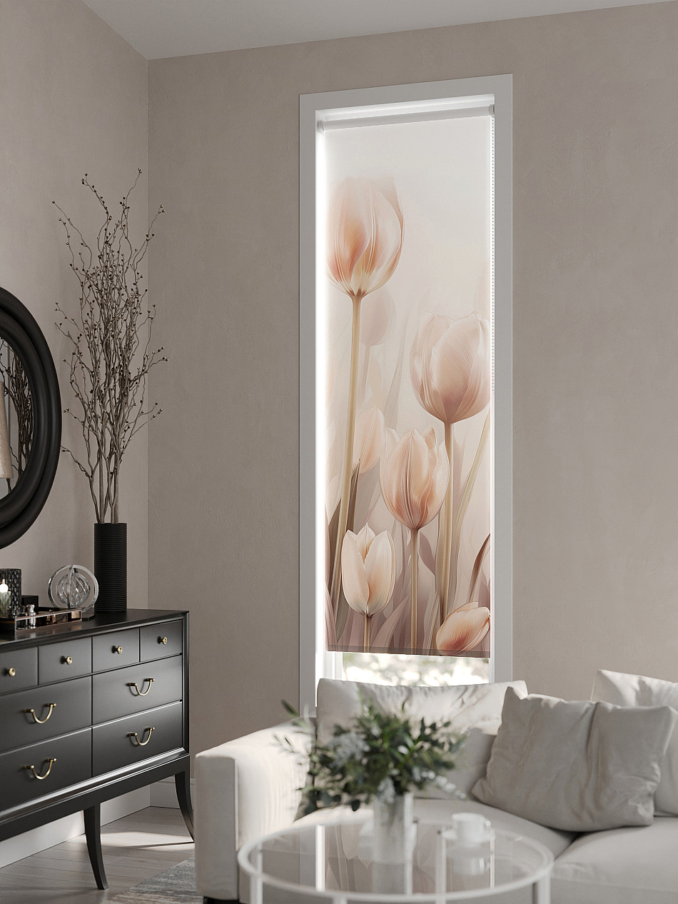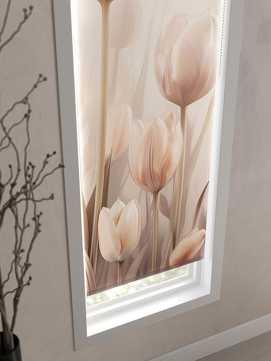 - Бежевые рулонные шторы