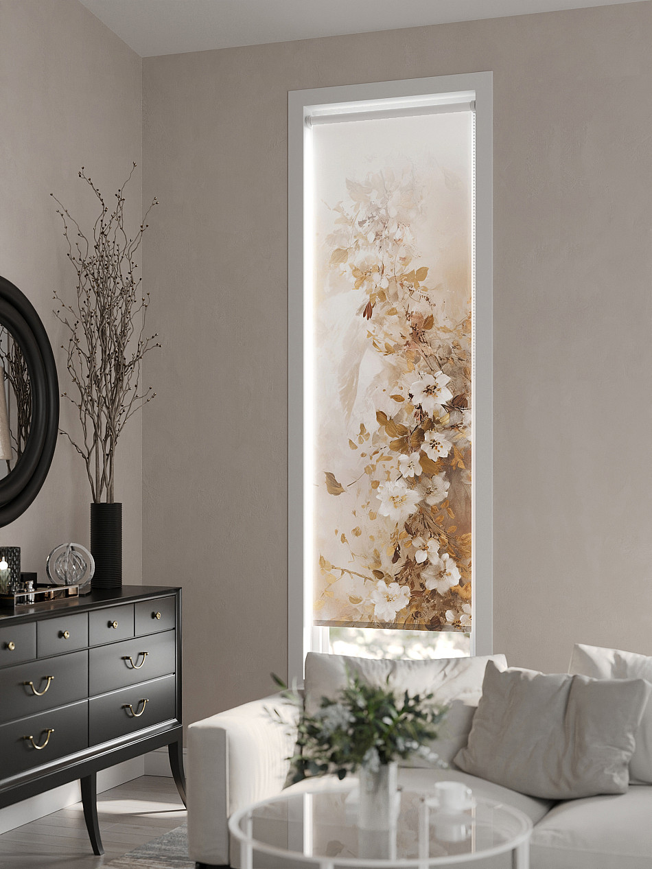 Нет необходимости делать штору заведомо короткой, т.к. в рулонной шторе вы просто тканевый валик не разматываете до конца, а в римской-складки.