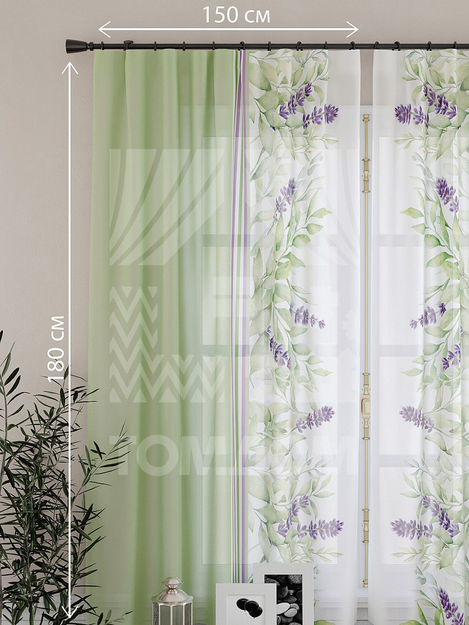 Ширина одного тюля без сборки 150 см, высота 180 см.