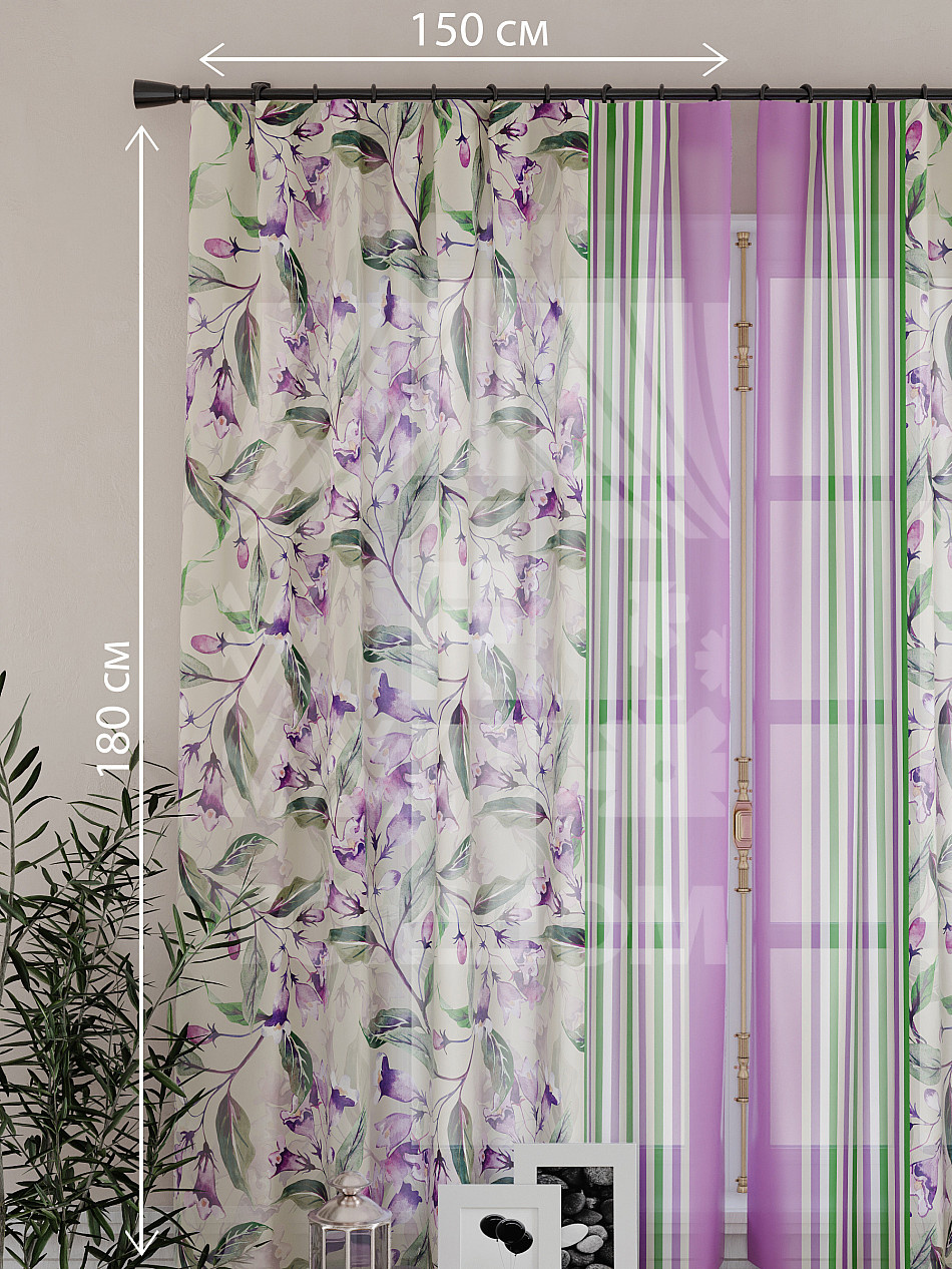 Ширина одного тюля без сборки 150 см, высота 180 см.