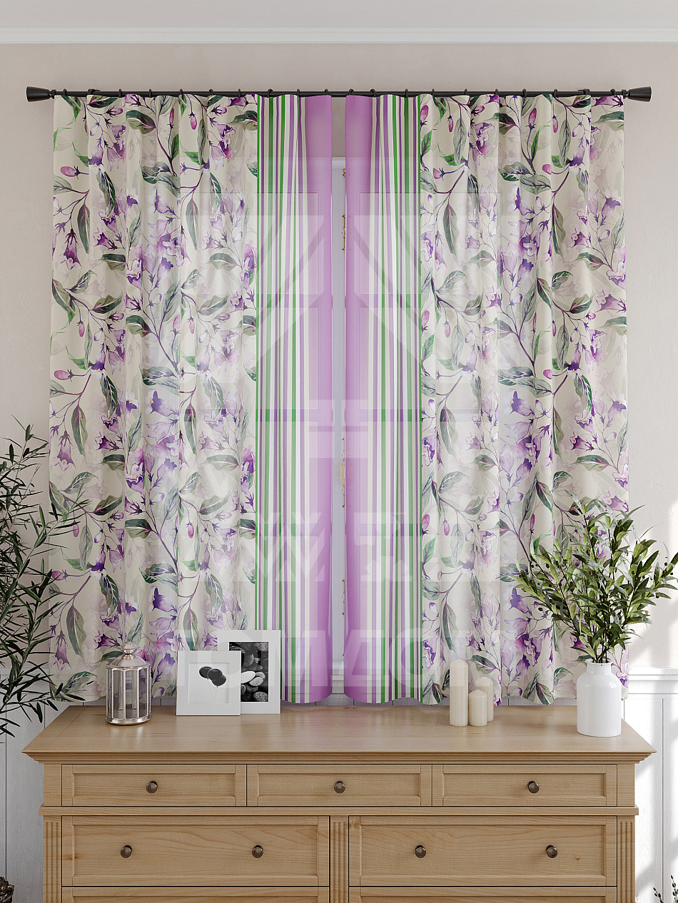 Тюль 2 шт. Подхват - доп.услуга. Легкая основа (вуаль) оформлена принтом. Вуаль с матовой полупрозрачной текстурой. Отличается особым шиком, идеально подходит для создания воздушных штор. Придает ощущение свежести, хорошо пропускает воздух. Ткань неприхотлива в уходе, хорошо стирается без разрушения волокон с течением времени за счет высокого кручения нитей.