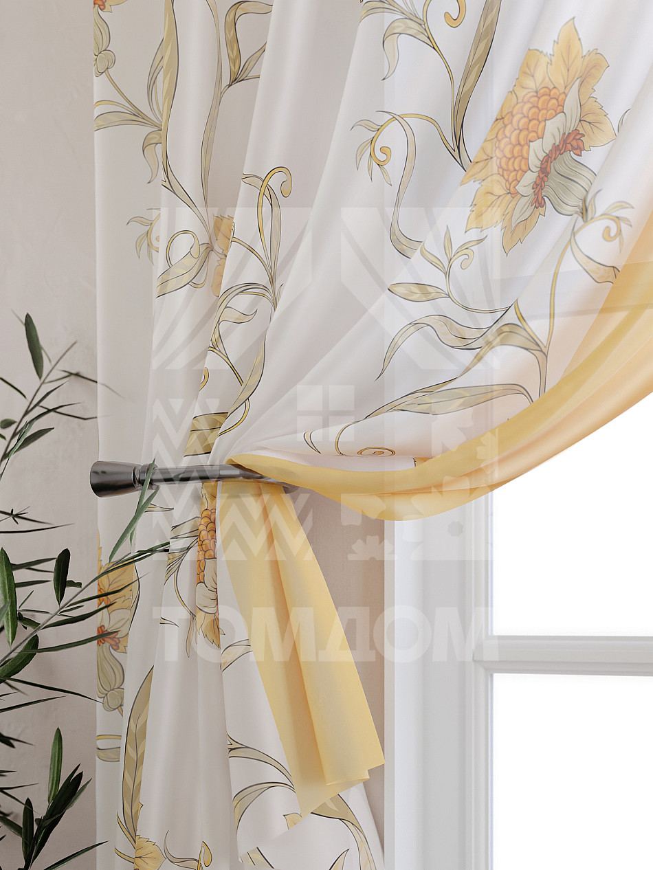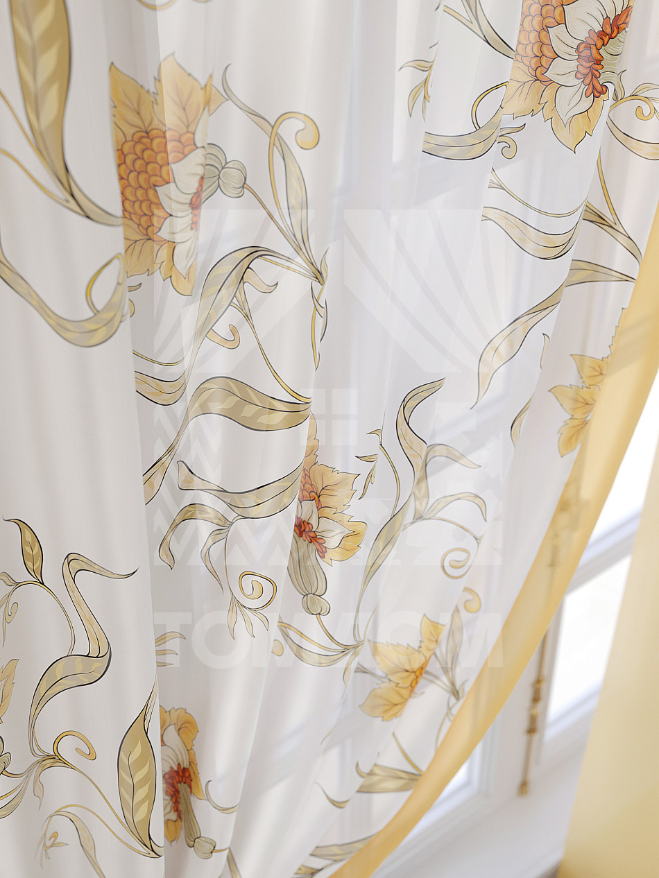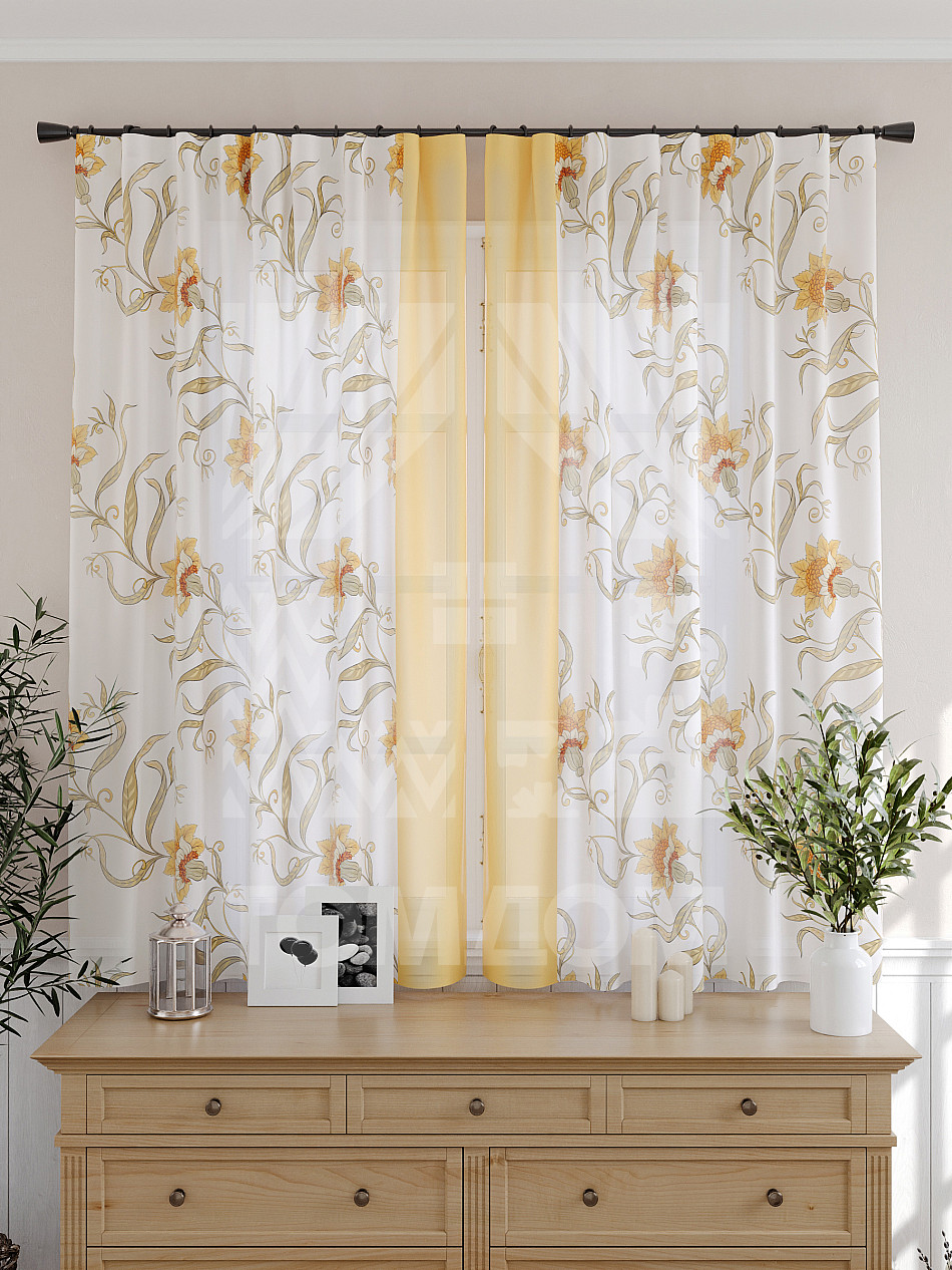 Тюль 2 шт. Подхват - доп.услуга. Легкая основа (вуаль) оформлена принтом. Вуаль с матовой полупрозрачной текстурой. Отличается особым шиком, идеально подходит для создания воздушных штор. Придает ощущение свежести, хорошо пропускает воздух. Ткань неприхотлива в уходе, хорошо стирается без разрушения волокон с течением времени за счет высокого кручения нитей.