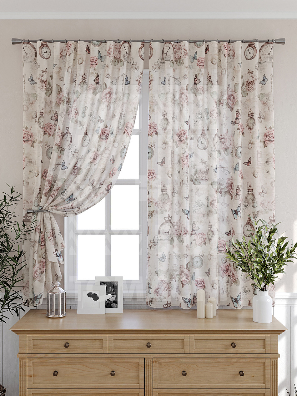 Тюль 2 шт. Подхват - доп.услуга. Легкая основа (вуаль) оформлена принтом. Вуаль с матовой полупрозрачной текстурой. Отличается особым шиком, идеально подходит для создания воздушных штор. Придает ощущение свежести, хорошо пропускает воздух. Ткань неприхотлива в уходе, хорошо стирается без разрушения волокон с течением времени за счет высокого кручения нитей.