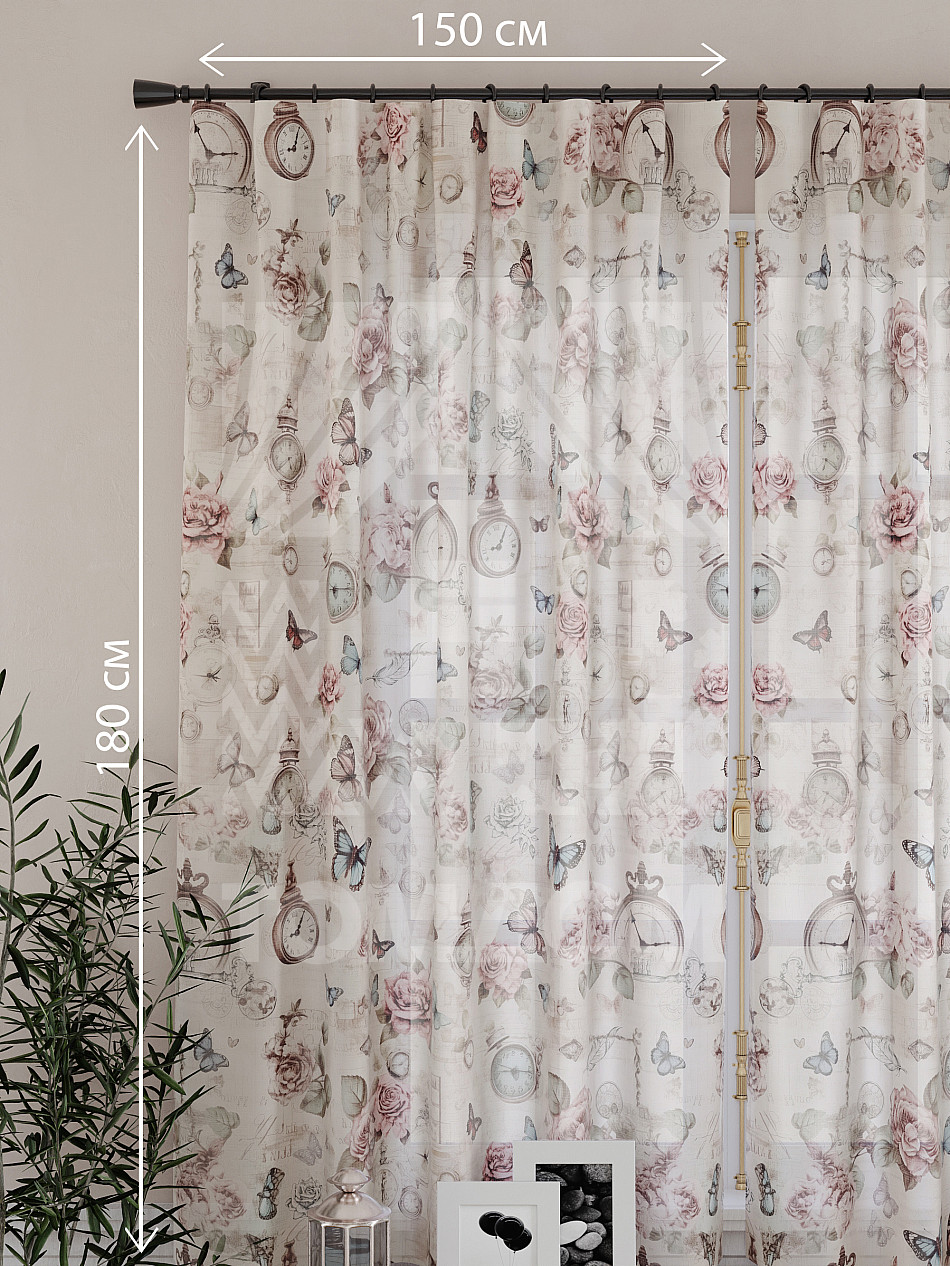 Ширина одного тюля без сборки 150 см, высота 180 см.