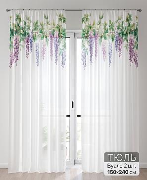 Тюль 2 шт. Легкая основа (вуаль) оформлена фотопечатью. Вуаль с матовой полупрозрачной текстурой. Отличается особым шиком, идеально подходит для создания воздушных штор. Придает ощущение свежести, хорошо пропускает воздух. Ткань неприхотлива в уходе, хорошо стирается без разрушения волокон с течением времени за счет высокого кручения нитей.