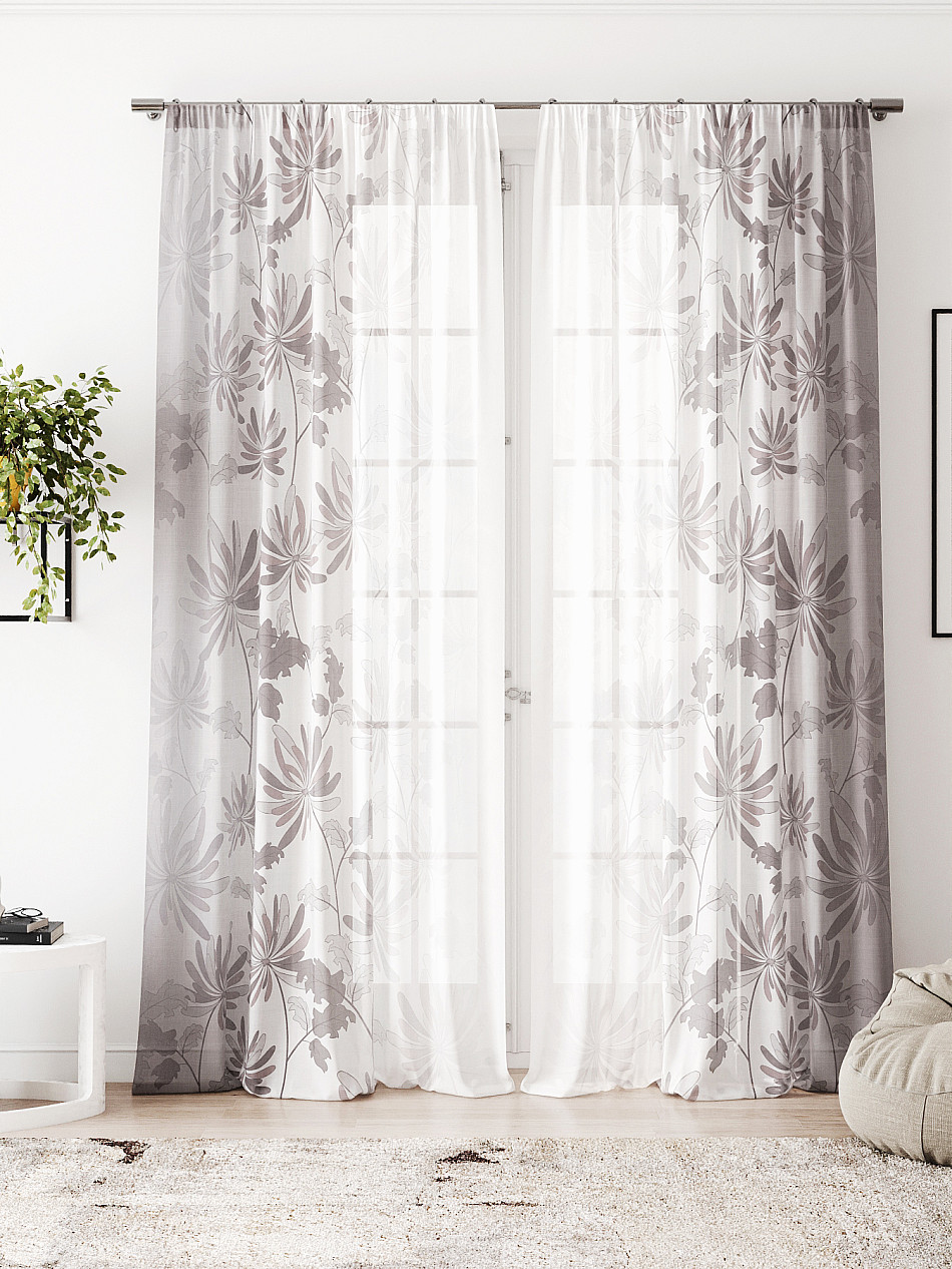 Тюль 2 шт. Легкая основа (вуаль) оформлена фотопечатью. Вуаль с матовой полупрозрачной текстурой. Отличается особым шиком, идеально подходит для создания воздушных штор. Придает ощущение свежести, хорошо пропускает воздух. Ткань неприхотлива в уходе, хорошо стирается без разрушения волокон с течением времени за счет высокого кручения нитей.