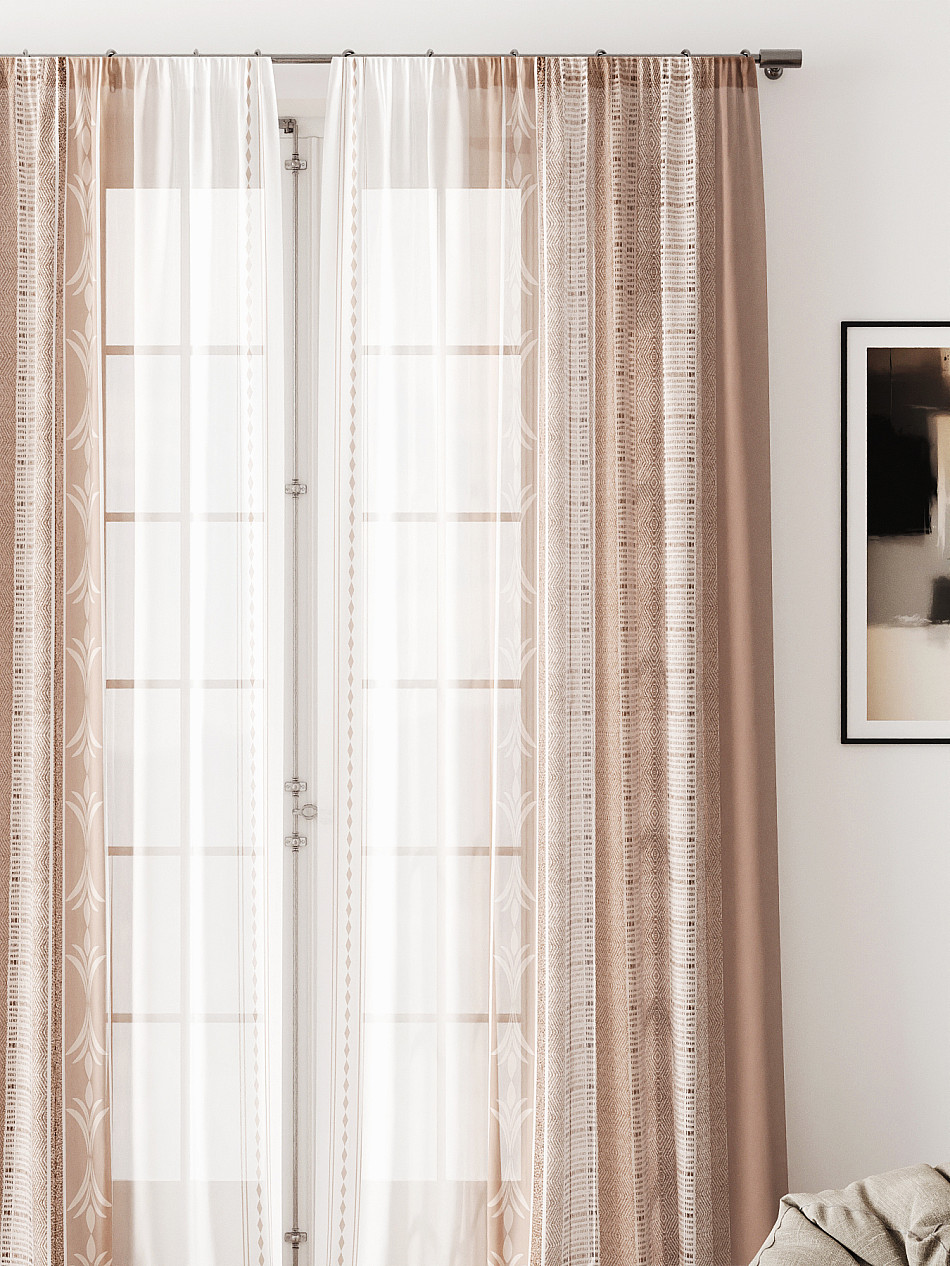 Вуаль – невесомая, практически прозрачная и очень нежная ткань, которая прекрасно смотрится в любом интерьере. Вуалевые шторы изысканны и элегантны как соло, так и в составе шторных ансамблей. Такие гардины придают окну воздушность, легко драпируются, мягко преломляют солнечные лучи и вносят изящество в оформление комнаты. Благодаря широкому ассортименту можно выбрать однотонные вуалевые шторы, либо с орнаментом, с аппликацией или вышивкой, в любом случае ваш выбор будет смотреться красиво и современно.