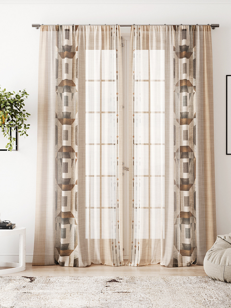 Тюль 2 шт. Легкая основа (вуаль) оформлена фотопечатью. Вуаль с матовой полупрозрачной текстурой. Отличается особым шиком, идеально подходит для создания воздушных штор. Придает ощущение свежести, хорошо пропускает воздух. Ткань неприхотлива в уходе, хорошо стирается без разрушения волокон с течением времени за счет высокого кручения нитей.