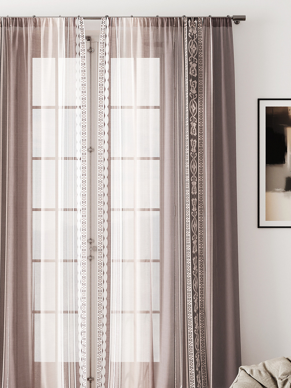 Вуаль – невесомая, практически прозрачная и очень нежная ткань, которая прекрасно смотрится в любом интерьере. Вуалевые шторы изысканны и элегантны как соло, так и в составе шторных ансамблей. Такие гардины придают окну воздушность, легко драпируются, мягко преломляют солнечные лучи и вносят изящество в оформление комнаты. Благодаря широкому ассортименту можно выбрать однотонные вуалевые шторы, либо с орнаментом, с аппликацией или вышивкой, в любом случае ваш выбор будет смотреться красиво и современно.