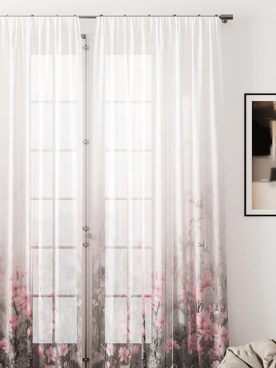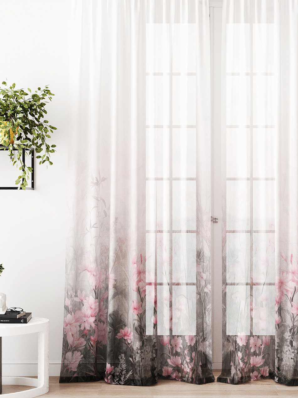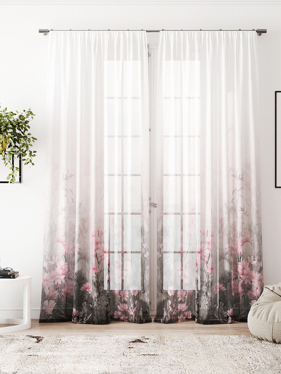 Тюль 2 шт. Легкая основа (вуаль) оформлена фотопечатью. Вуаль с матовой полупрозрачной текстурой. Отличается особым шиком, идеально подходит для создания воздушных штор. Придает ощущение свежести, хорошо пропускает воздух. Ткань неприхотлива в уходе, хорошо стирается без разрушения волокон с течением времени за счет высокого кручения нитей.