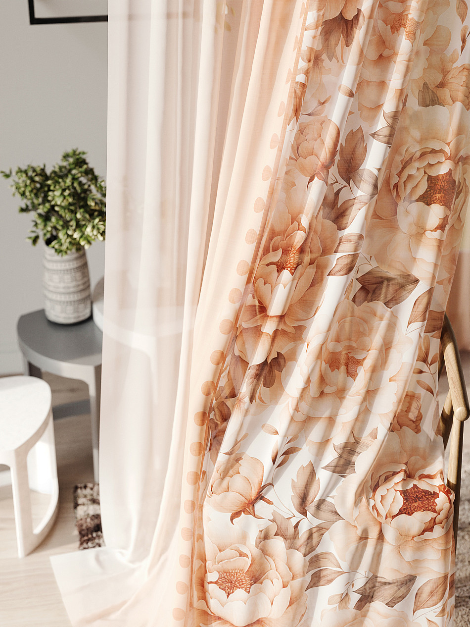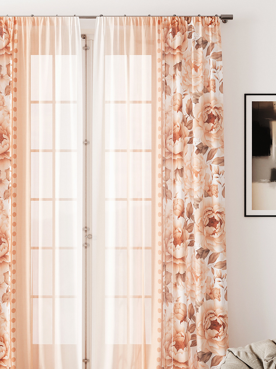 Тюль 2 шт. Легкая основа (вуаль) оформлена фотопечатью. Вуаль с матовой полупрозрачной текстурой. Отличается особым шиком, идеально подходит для создания воздушных штор. Придает ощущение свежести, хорошо пропускает воздух. Ткань неприхотлива в уходе, хорошо стирается без разрушения волокон с течением времени за счет высокого кручения нитей.