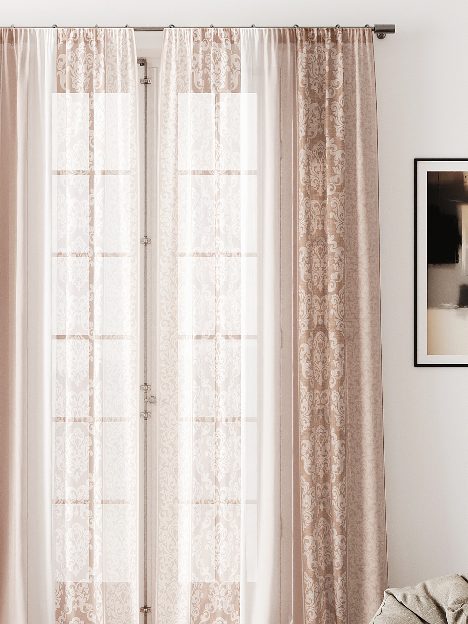 Вуаль 150х240 см — 2 шт. ( Изменить высоту) Крепление: шторная лента (крючки), кулиска Подробнее