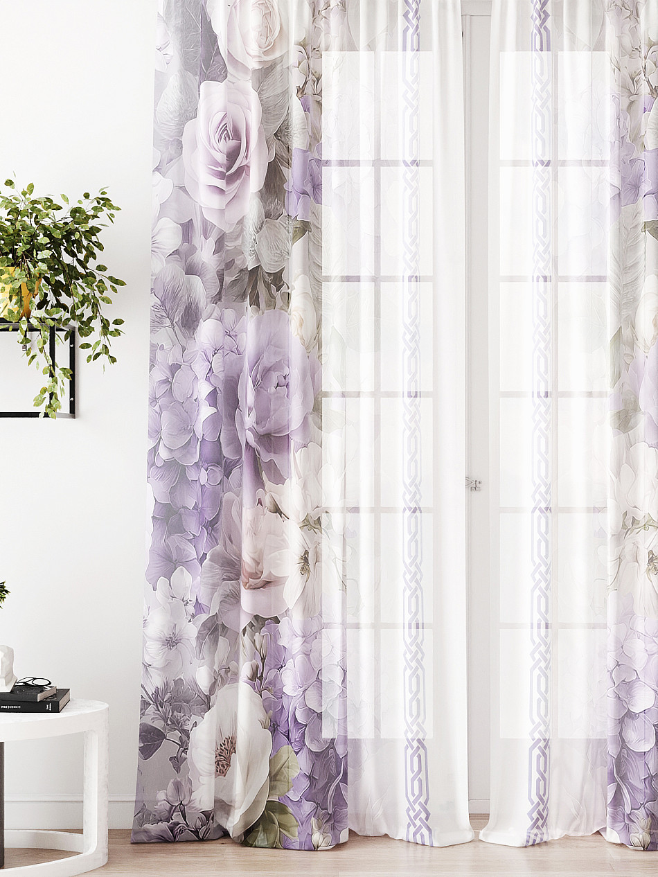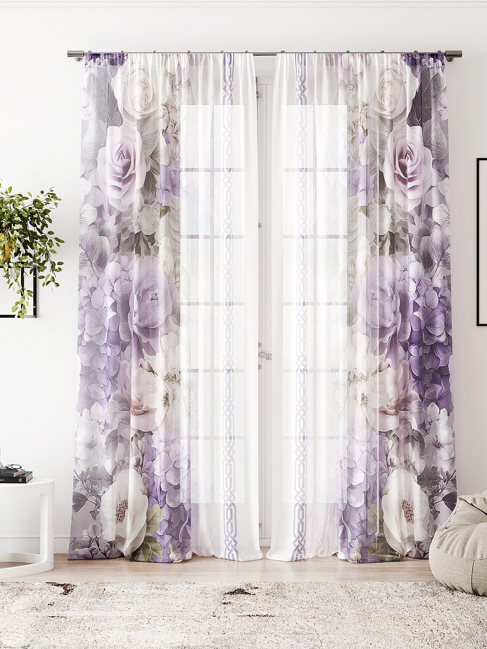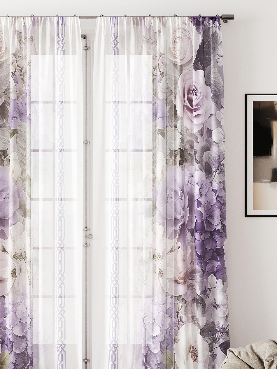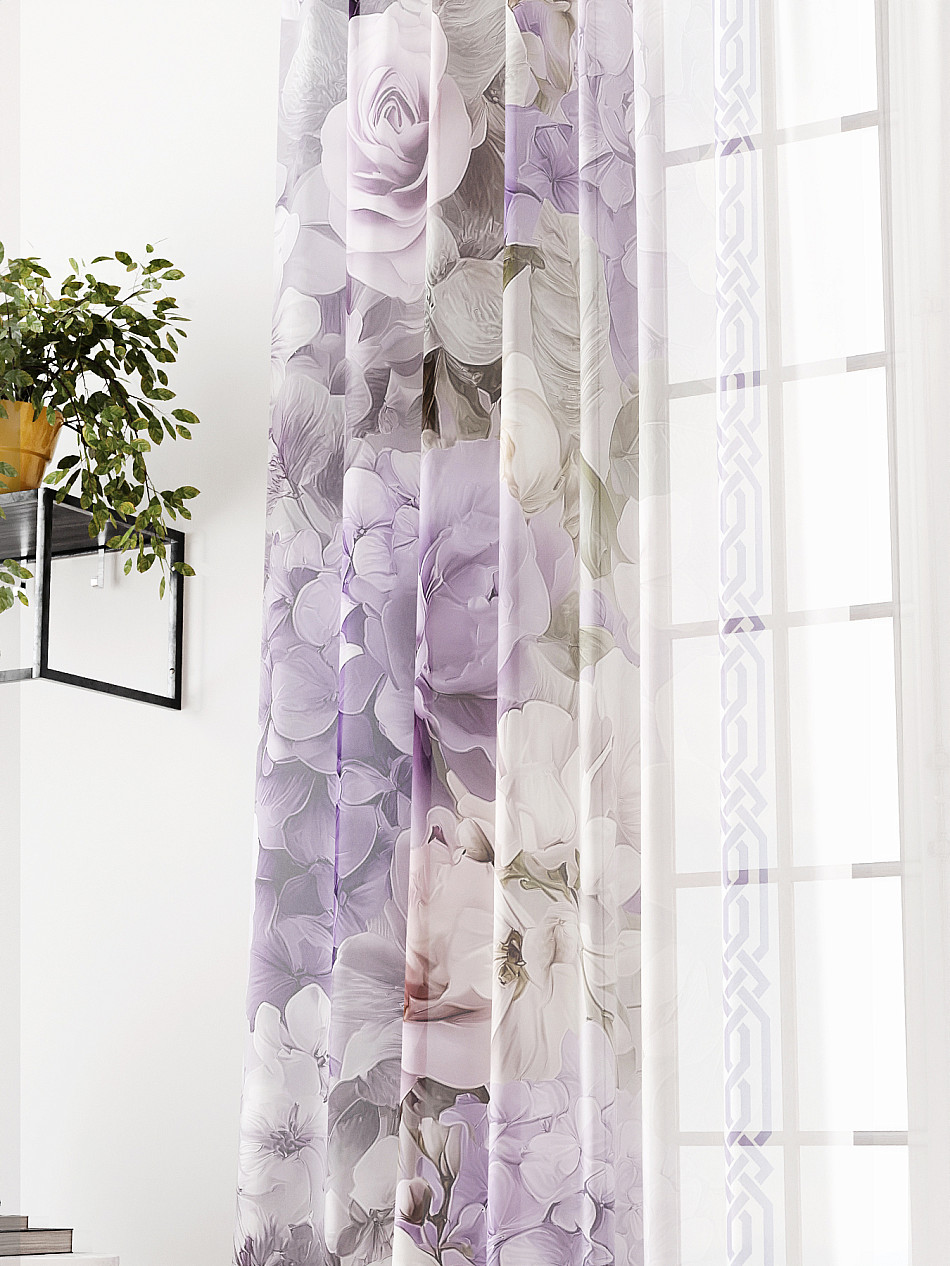 Тюль 2 шт. Легкая основа (вуаль) оформлена фотопечатью. Вуаль с матовой полупрозрачной текстурой. Отличается особым шиком, идеально подходит для создания воздушных штор. Придает ощущение свежести, хорошо пропускает воздух. Ткань неприхотлива в уходе, хорошо стирается без разрушения волокон с течением времени за счет высокого кручения нитей.