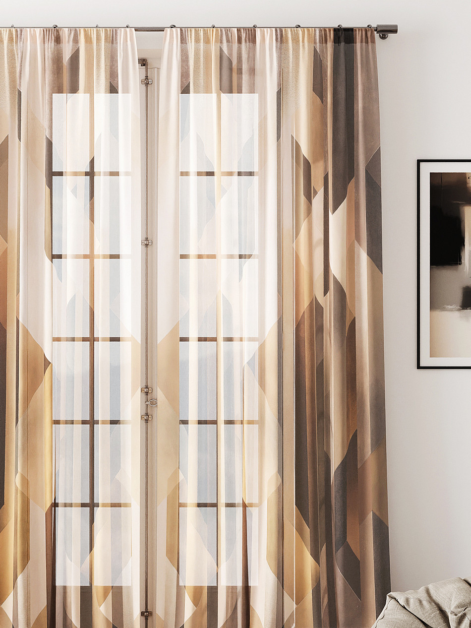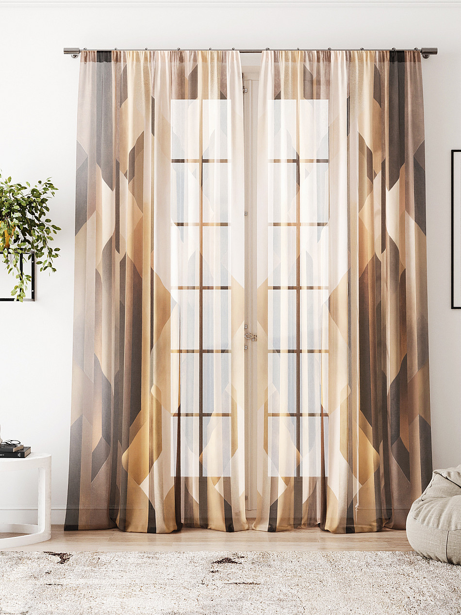 Тюль 2 шт. Легкая основа (вуаль) оформлена фотопечатью. Вуаль с матовой полупрозрачной текстурой. Отличается особым шиком, идеально подходит для создания воздушных штор. Придает ощущение свежести, хорошо пропускает воздух. Ткань неприхотлива в уходе, хорошо стирается без разрушения волокон с течением времени за счет высокого кручения нитей.