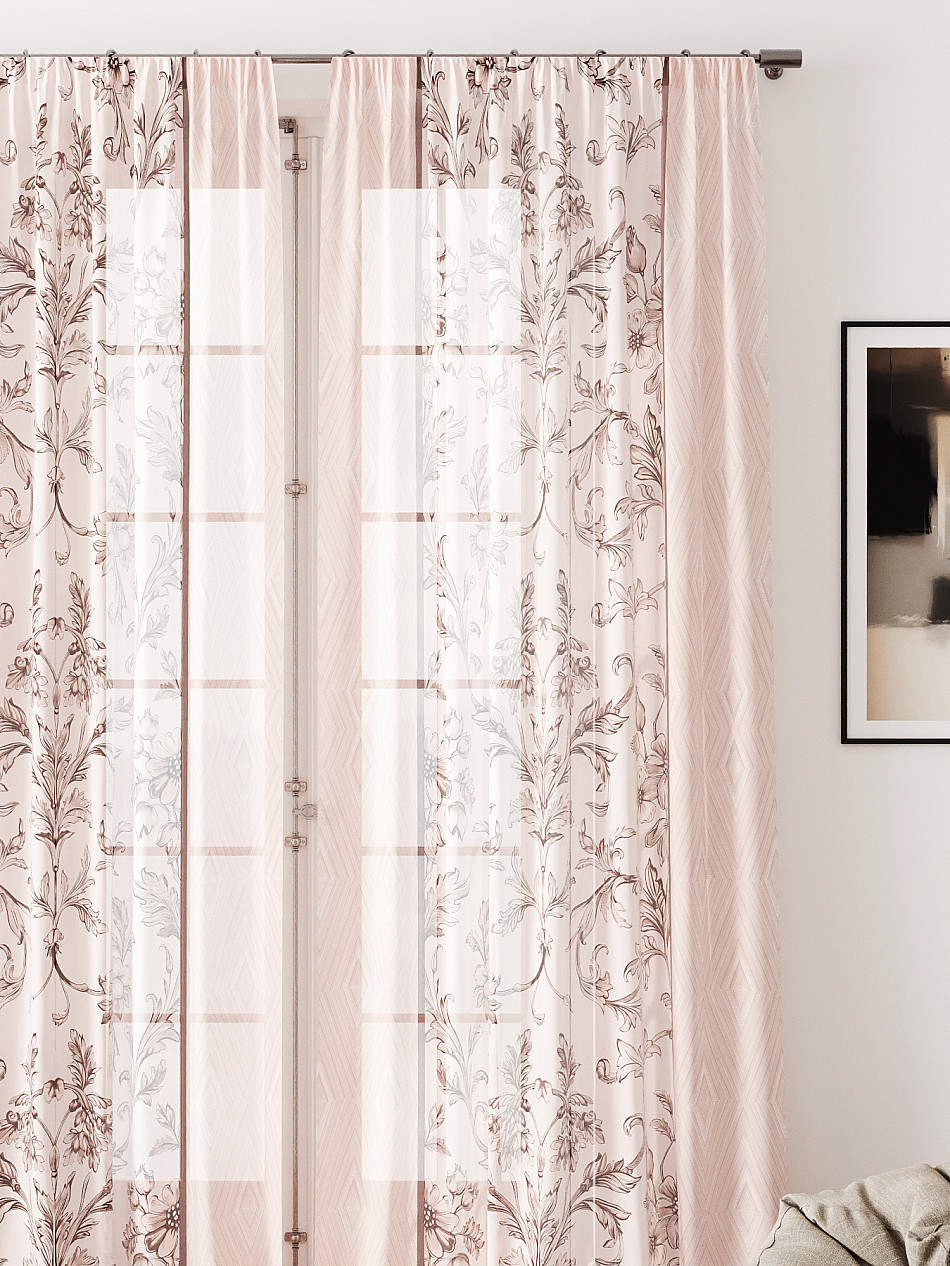 Тюль 2 шт. Легкая основа (вуаль) оформлена фотопечатью. Вуаль с матовой полупрозрачной текстурой. Отличается особым шиком, идеально подходит для создания воздушных штор. Придает ощущение свежести, хорошо пропускает воздух. Ткань неприхотлива в уходе, хорошо стирается без разрушения волокон с течением времени за счет высокого кручения нитей.