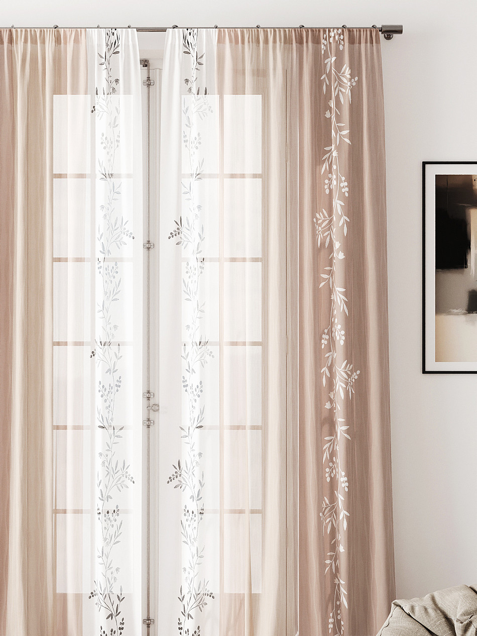 Вуаль – невесомая, практически прозрачная и очень нежная ткань, которая прекрасно смотрится в любом интерьере. Вуалевые шторы изысканны и элегантны как соло, так и в составе шторных ансамблей. Такие гардины придают окну воздушность, легко драпируются, мягко преломляют солнечные лучи и вносят изящество в оформление комнаты. Благодаря широкому ассортименту можно выбрать однотонные вуалевые шторы, либо с орнаментом, с аппликацией или вышивкой, в любом случае ваш выбор будет смотреться красиво и современно.
