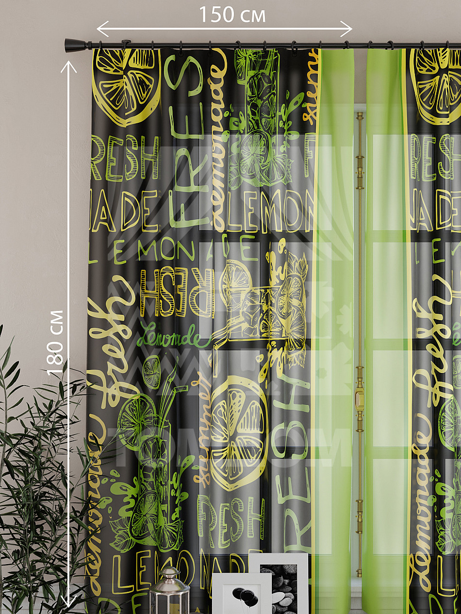 Ширина одного тюля без сборки 150 см, высота 180 см.