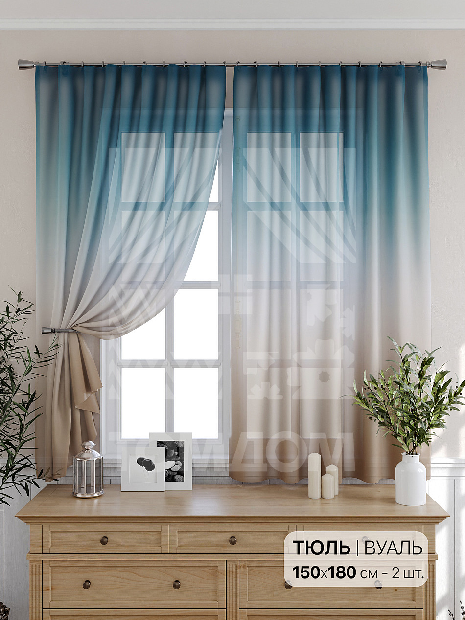 Тюль 2 шт. Подхват - доп.услуга. Легкая основа (вуаль) оформлена принтом. Вуаль с матовой полупрозрачной текстурой. Отличается особым шиком, идеально подходит для создания воздушных штор. Придает ощущение свежести, хорошо пропускает воздух. Ткань неприхотлива в уходе, хорошо стирается без разрушения волокон с течением времени за счет высокого кручения нитей.