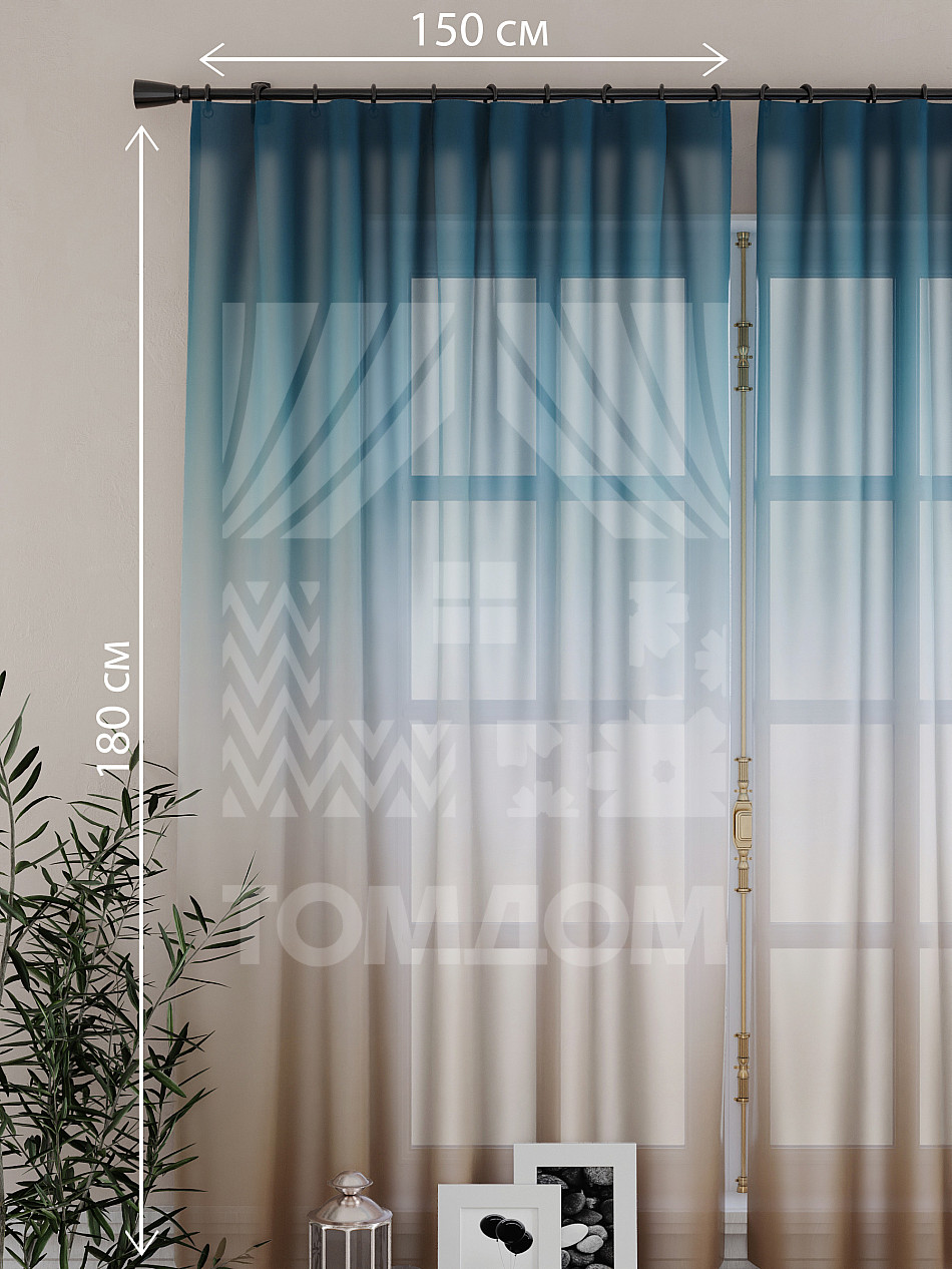 Ширина одного тюля без сборки 150 см, высота 180 см.