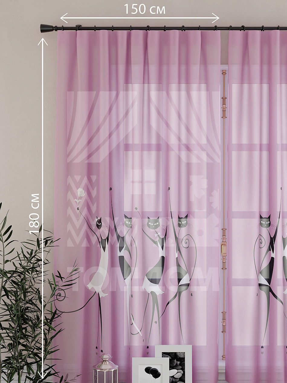 Ширина одного тюля без сборки 150 см, высота 180 см.