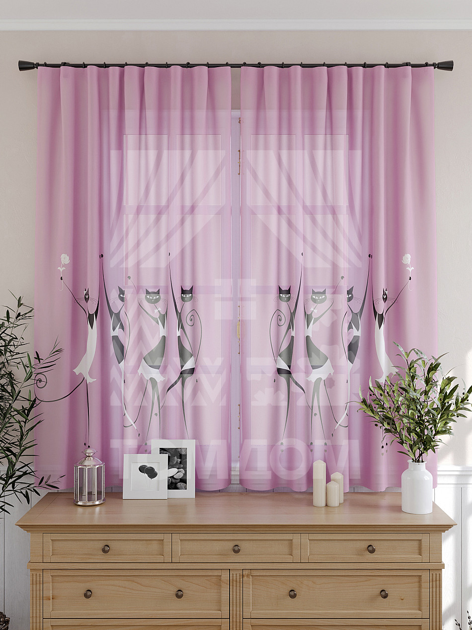 Тюль 2 шт. Подхват - доп.услуга. Легкая основа (вуаль) оформлена принтом. Вуаль с матовой полупрозрачной текстурой. Отличается особым шиком, идеально подходит для создания воздушных штор. Придает ощущение свежести, хорошо пропускает воздух. Ткань неприхотлива в уходе, хорошо стирается без разрушения волокон с течением времени за счет высокого кручения нитей.