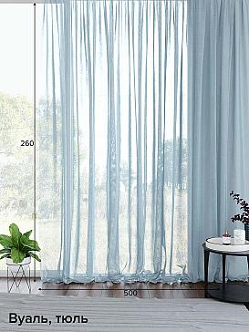 ВыбратьТюль 1 шт. Легкий, мягкий тюль из голубой вуали. Вуаль с матовой полупрозрачной текстурой. Отличается особым шиком, идеально подходит для создания воздушных штор. Придает ощущение свежести, хорошо пропускает воздух. Ткань неприхотлива в уходе, хорошо стирается без разрушения волокон с течением времени за счет высокого кручения нитей.